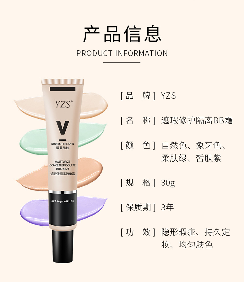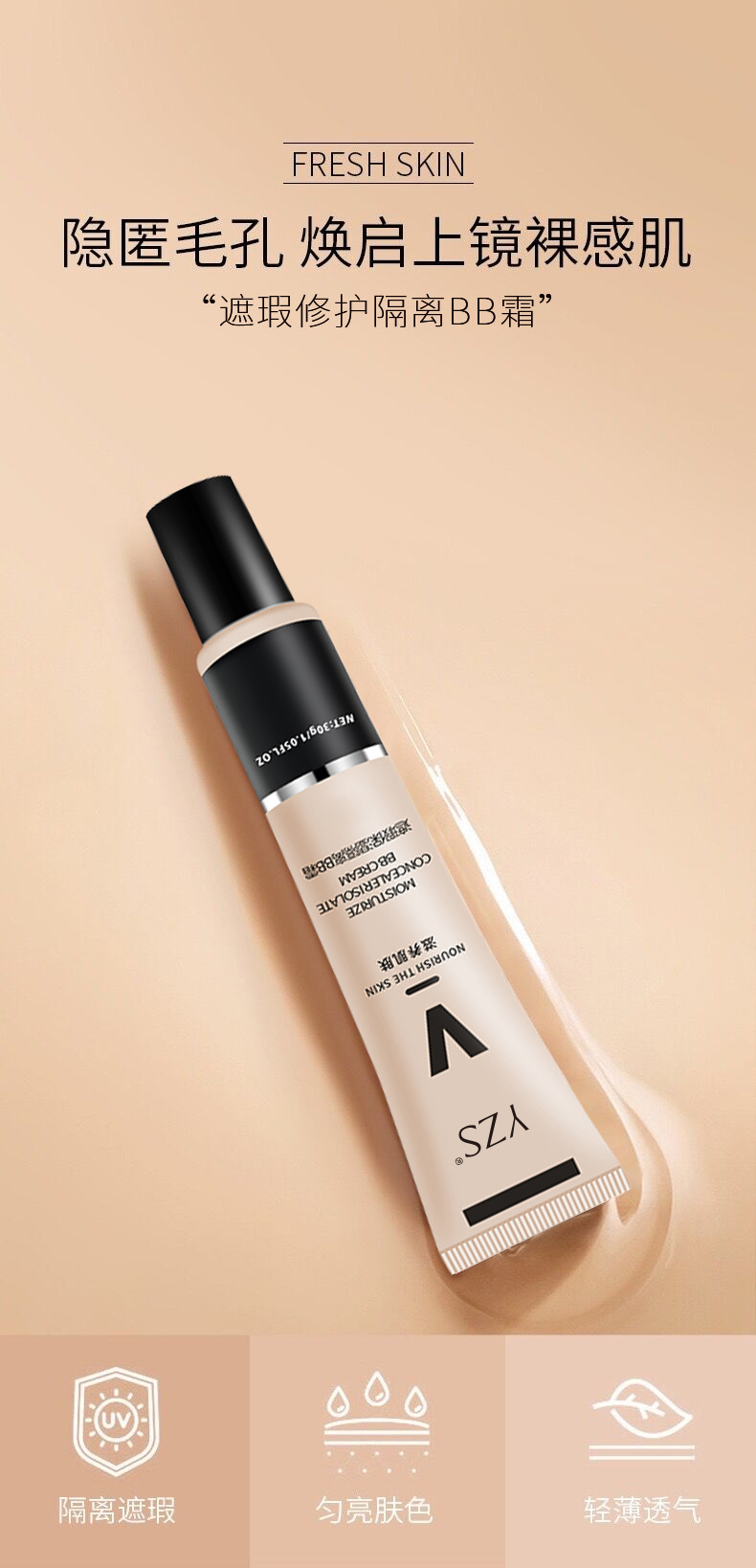 FV同款 YZS 隔离霜 妆前乳打底定妆遮瑕膏隐形毛孔提亮肤色BB霜粉底液BB霜