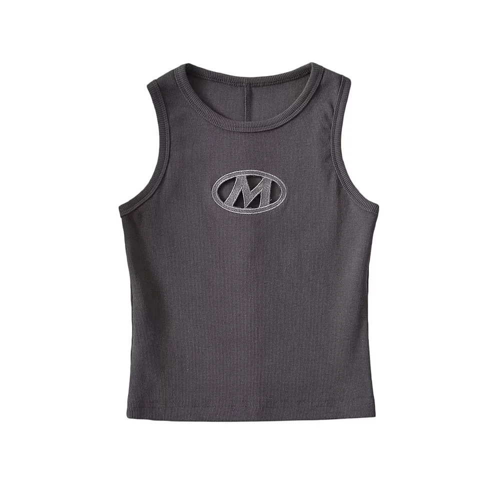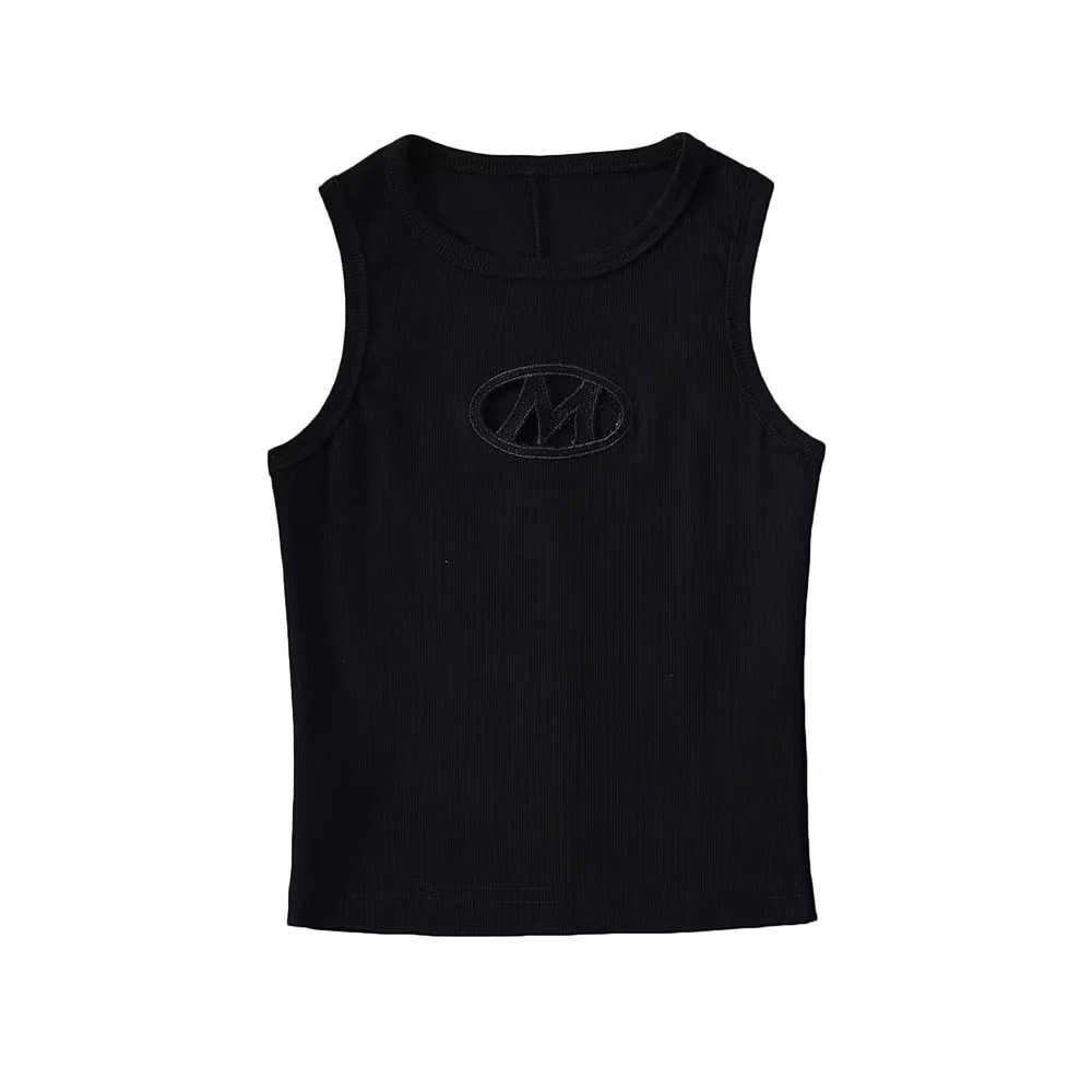 9070# 又甜又辣 无袖背心 胸前字母刺绣镂空百搭 带胸垫