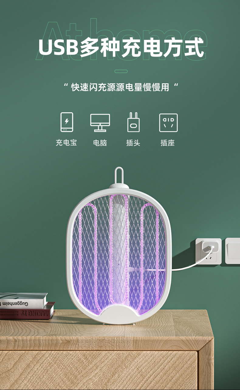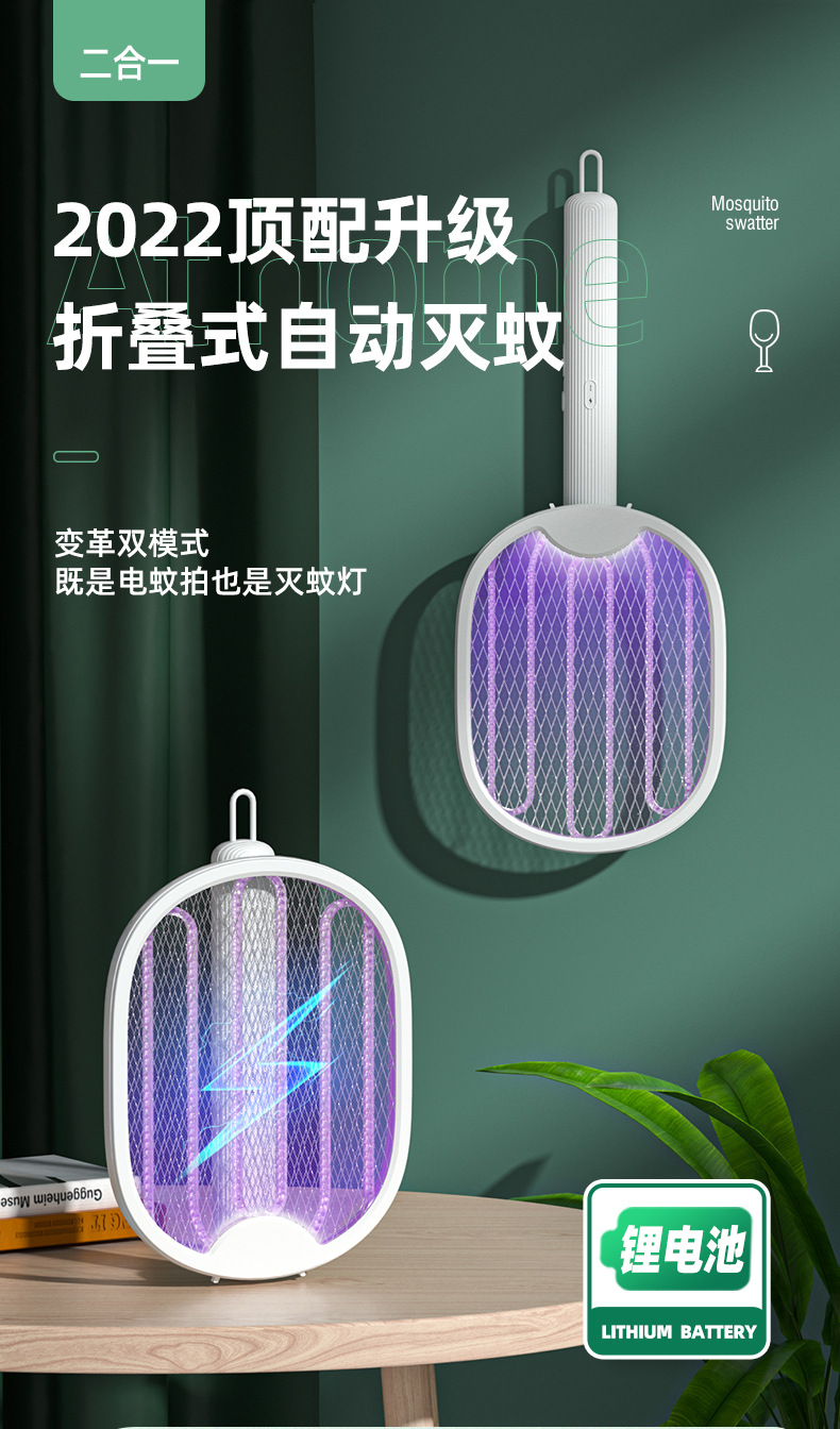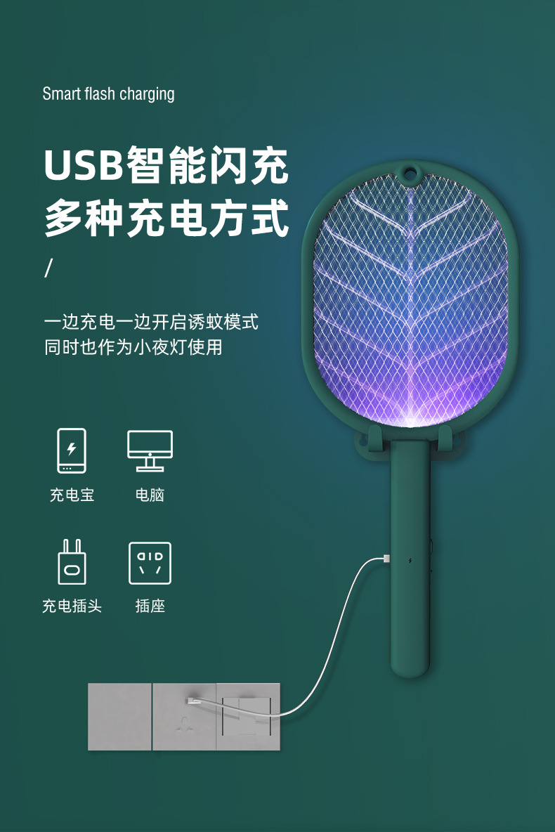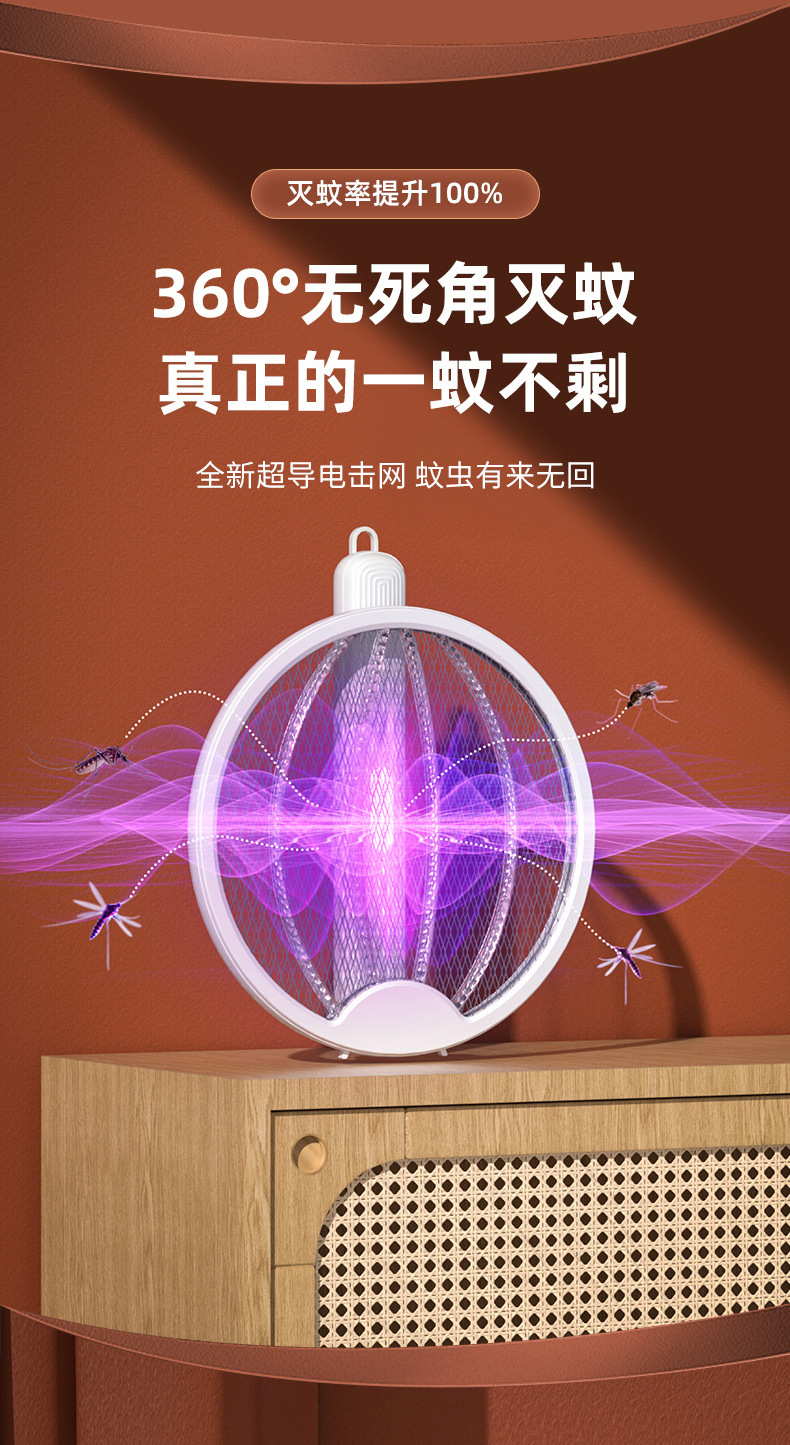 新款电蚊拍电击折叠灭蚊拍USB灭蚊器充电式家用二合一灭蚊灯