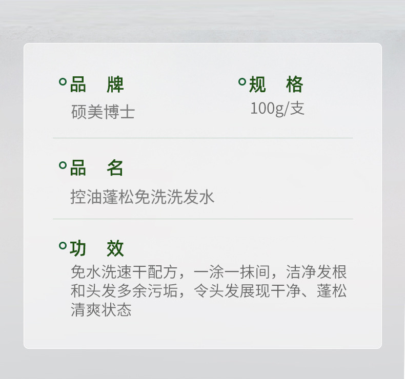 SPECS同款硕美博士控油蓬松免洗洗发水100g深层细嫩清洁发丝控油清香洗发水