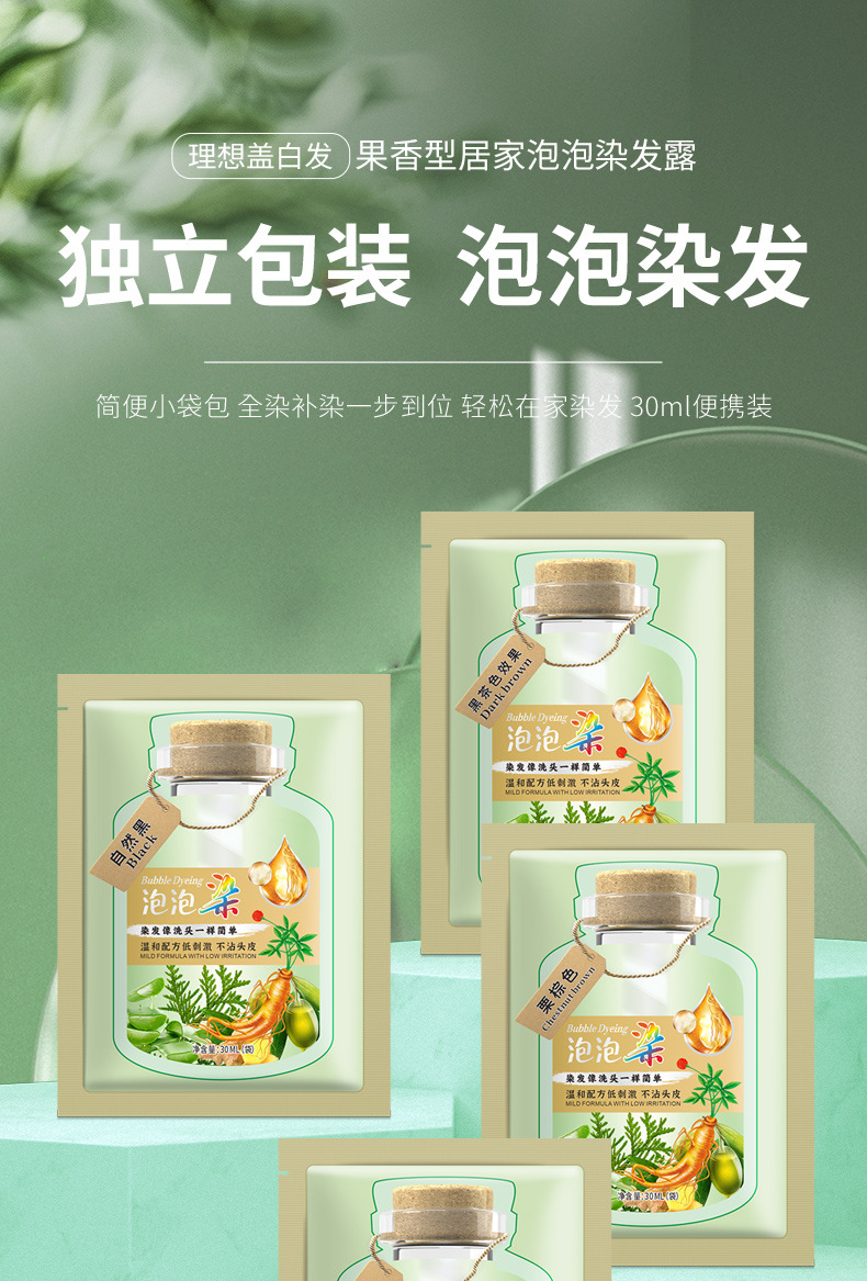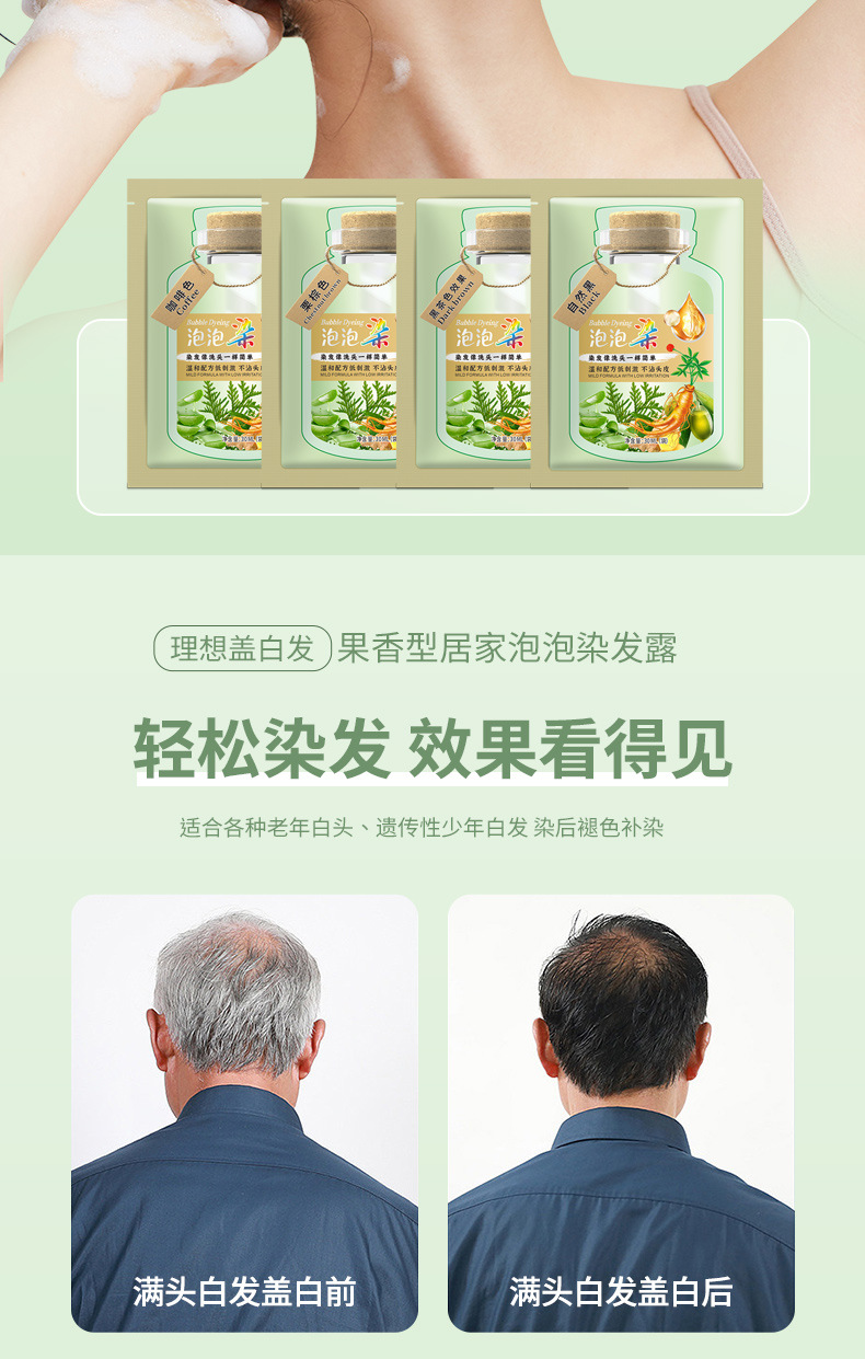 一支彩 一支黑 (批发专用)袋装泡泡染发剂盖白发植物染发膏草本染发剂