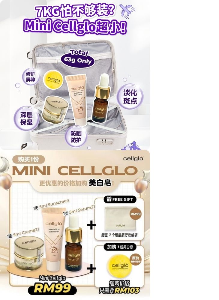 Cellglo 护肤四宝 Skincare 4 Step(Deep Cleansing.Bar ,Serum21,Creme21 ,Sunscreen)