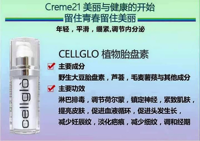 > 护肤SKIN CARE > 脸FACE > Cellglo Creme 21 Formulated in France 21 100%original 细亮霜 法国研制 (30ml)