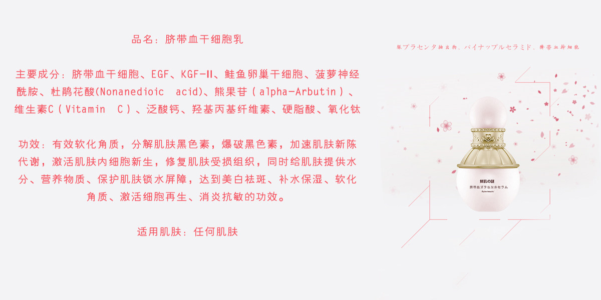 核心成分:马胎盘提取物、菠萝神经酰胺、脐带血干细胞