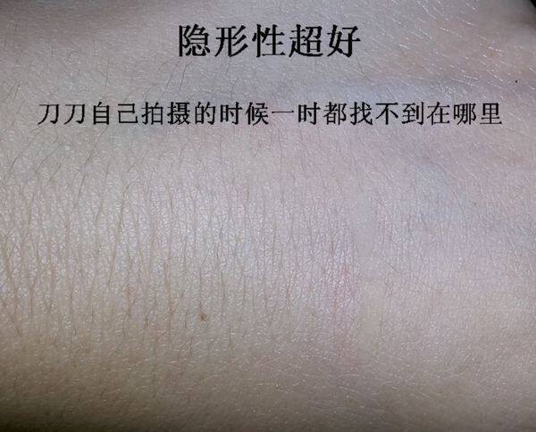 4上粉底后,胶带变得不明显。粉底液、粉饼、粉霜都可以,但粉底液最自然,也不易卡粉在胶带边缘;