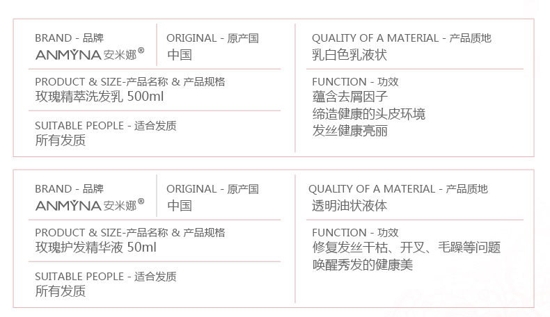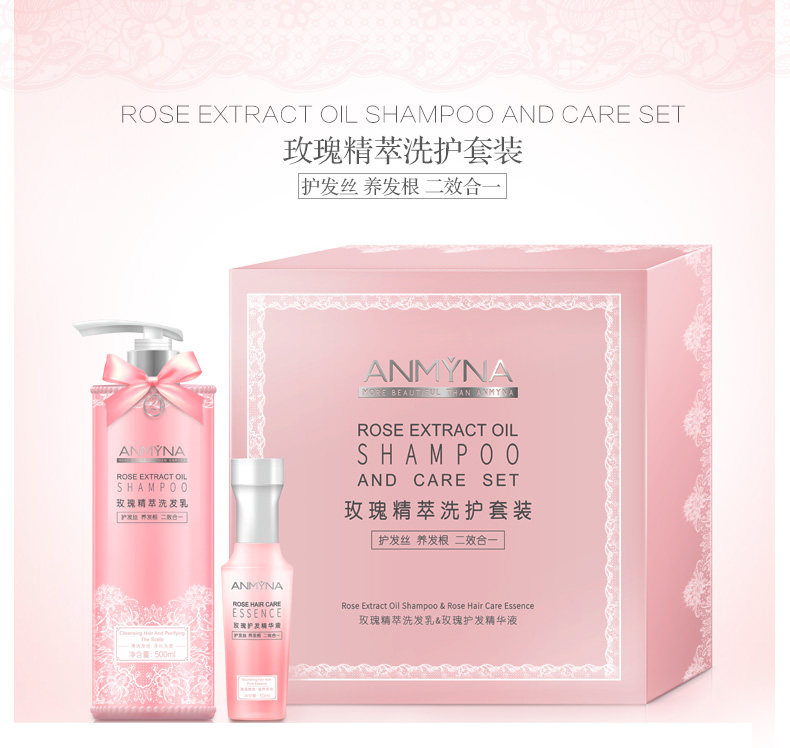 玫瑰柔顺洗发水套装(500ml洗发水+50ml精油)
