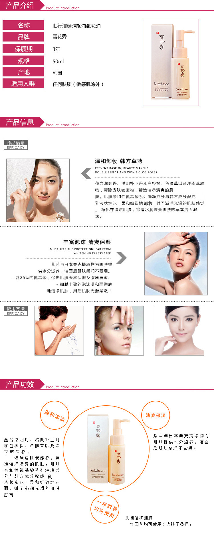 品 牌: 雪花秀 规 格: 50ml 质 地: 啫喱 产 地: 韩国 包 装: 盒装无塑封