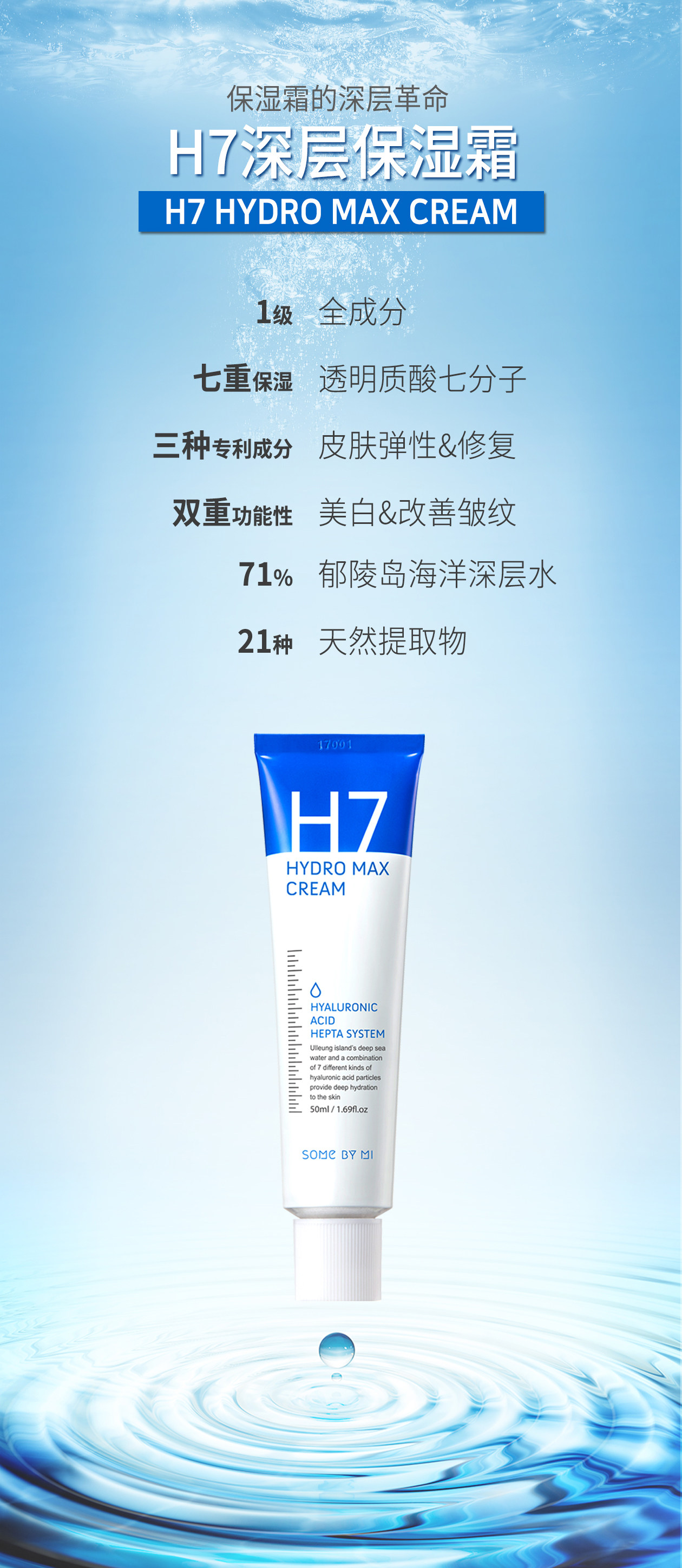 韩国正品 H7 Hydro Max cream 補水面霜 高效保湿 50ml(送面膜)