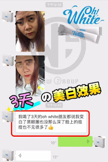 我们的肌肤几乎每天都暴露在太阳底下和污染的空气中,这使我们的肌肤被过多的自由基和紫外线,导致脱水和加速老化的过程。Oh! White,是您独一无二的肌肤解决方案,让您的肌肤更白皙和更有光泽。它有比市面上美白饮品多处10倍的抗氧化剂,再加上桑树萃取精华有效的抑制了肌肤组织生产黑色素而导致皮肤黝黑。在短短的7天内,改善肌肤颜色不均匀的烦恼。如果定期饮用Oh! White,它可以保证您的肌肤看起来更加年轻、精力充沛,就好像钻石一样晶莹剔透!