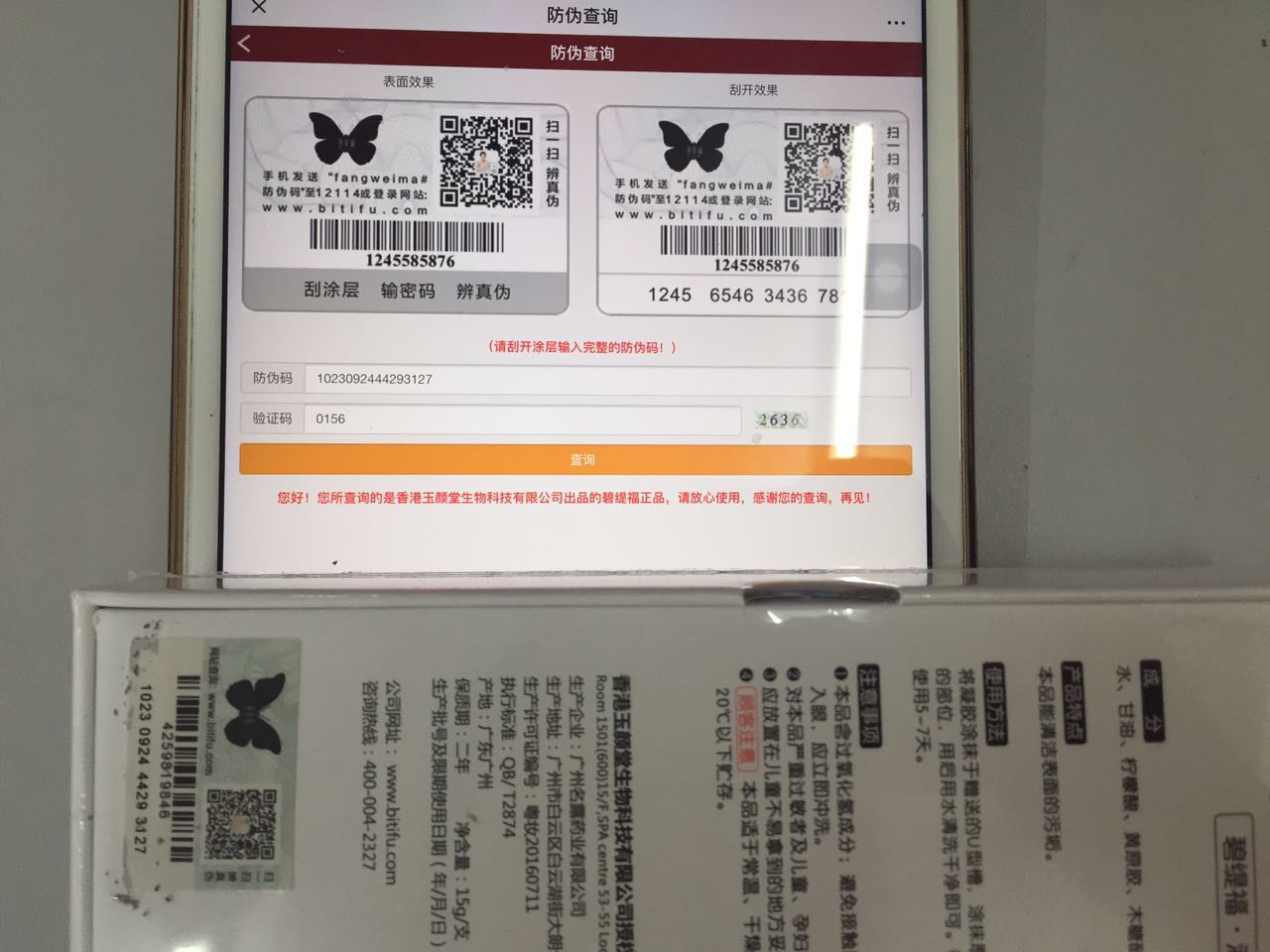 此产品有防伪码,可以查询是否正品,每一批到货都会有不同的情况。请参考以下例子: