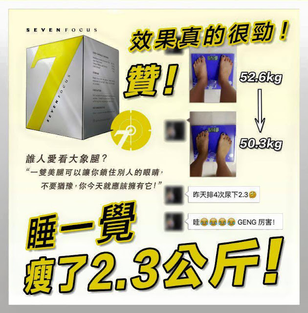 到底是什么这样神奇的瘦腿?? 大量现货!! 100% 证明!! 100% 效果!!给大家看看什么是 7 focus!! 超强瘦 “ 下半身 ” !! 1粒马上见效!!全亚洲女性最爱!!绝对让你马上体验: Belum try belum tau, sekali try hari hari mau !