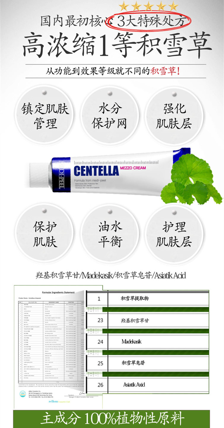 预购 韩国正品Medipeel美蒂菲皮肤科积雪草稻谷面霜再生霜祛痘淡化痘印疤痕术后修复