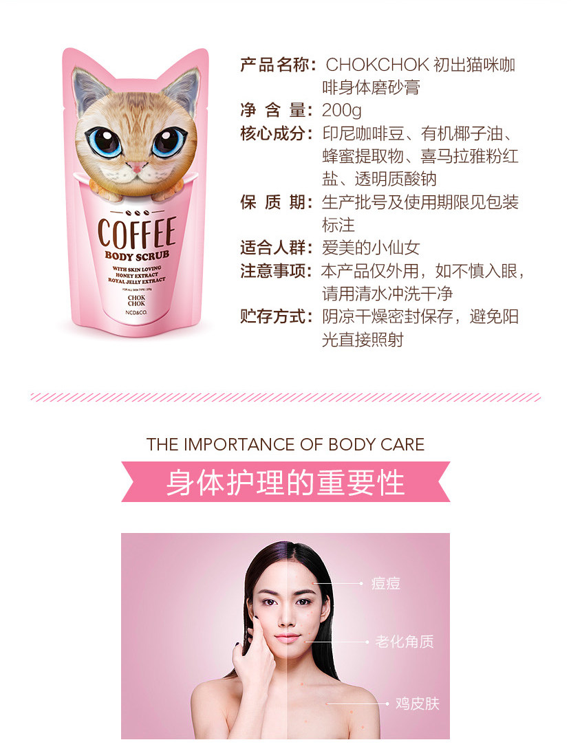 韩国正品CHOK磨砂膏沐浴露 CHOK CHOK初出猫咪咖啡身体磨砂乳200ml