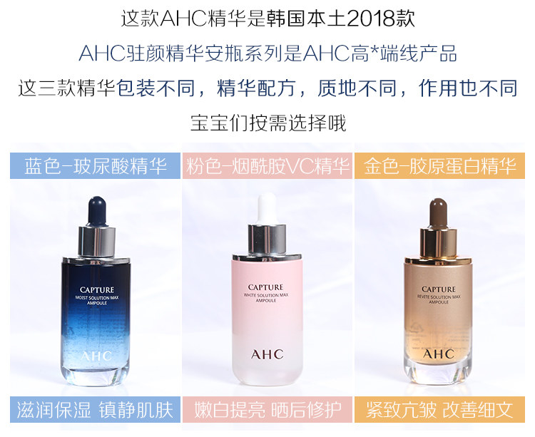 韩国正品AHC驻颜精华安瓶保湿水润光泽小蓝瓶100ML