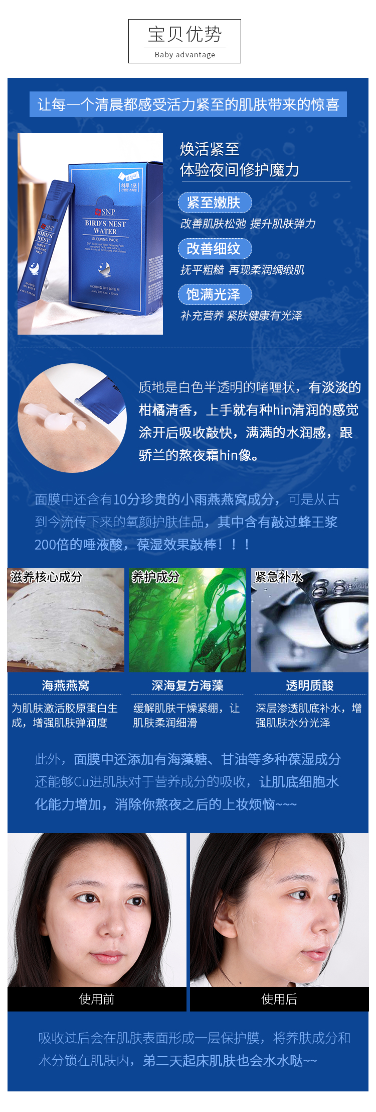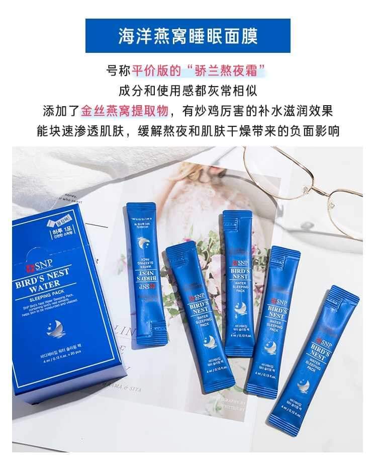 韩国SNP燕窝睡眠面膜补水保湿紧致提亮肤色免洗男女(1盒20支)