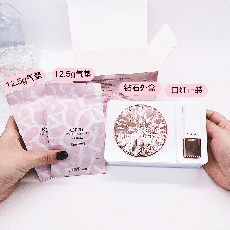 韩国新款爱敬age20's钻石星耀气垫套盒遮瑕水润保湿水光感粉底膏(有1个refill pack,1支口红)