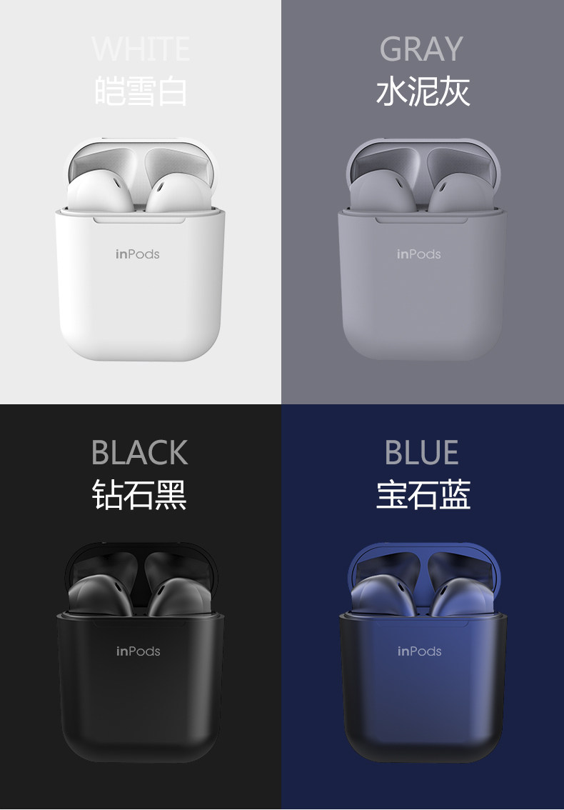 新款马卡龙多彩INPODS12细腻磨砂HIFI真立体弹窗运动无线蓝牙耳机 I12