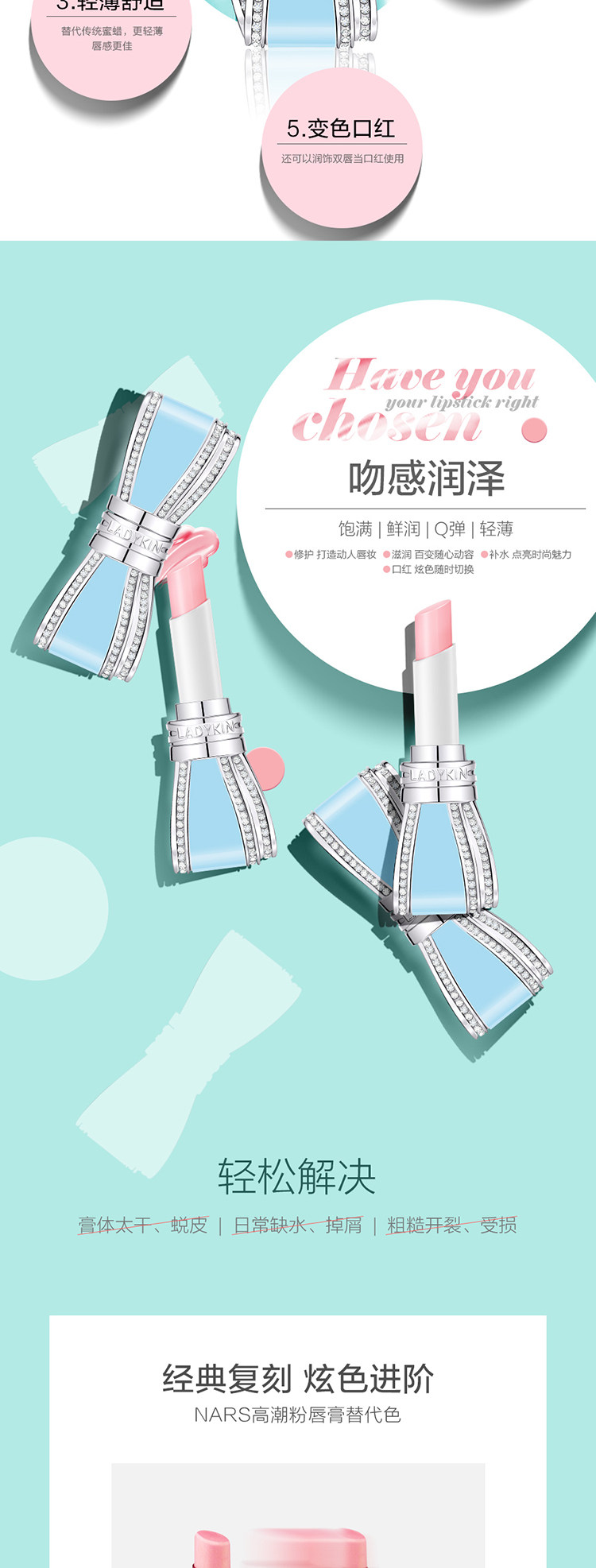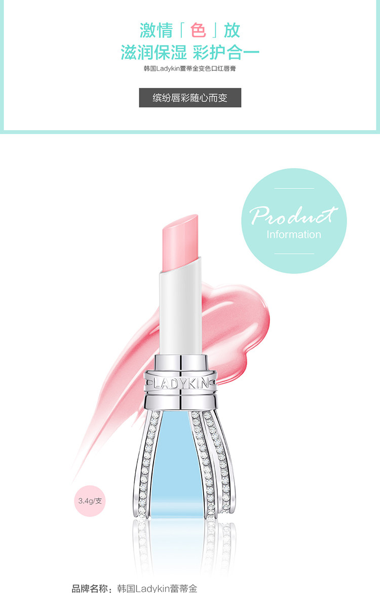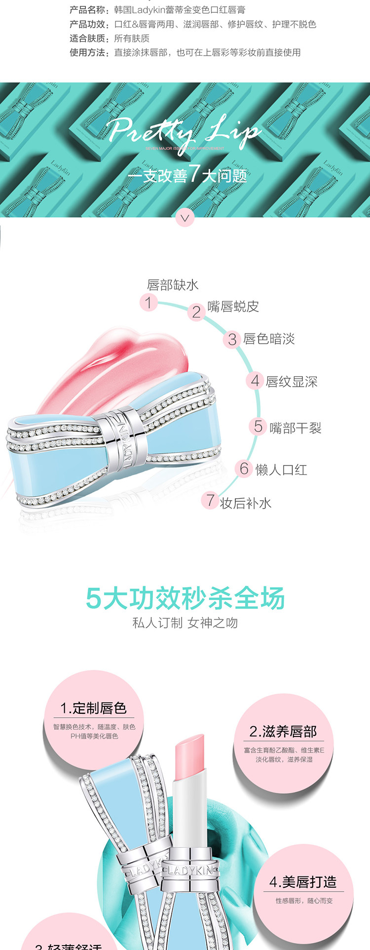 韩国ladykin蕾蒂金变色唇膏蝴蝶结口红提亮肤色保湿滋润持久补水