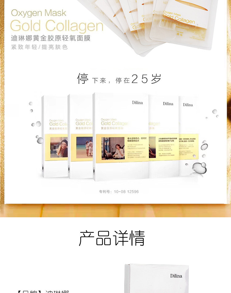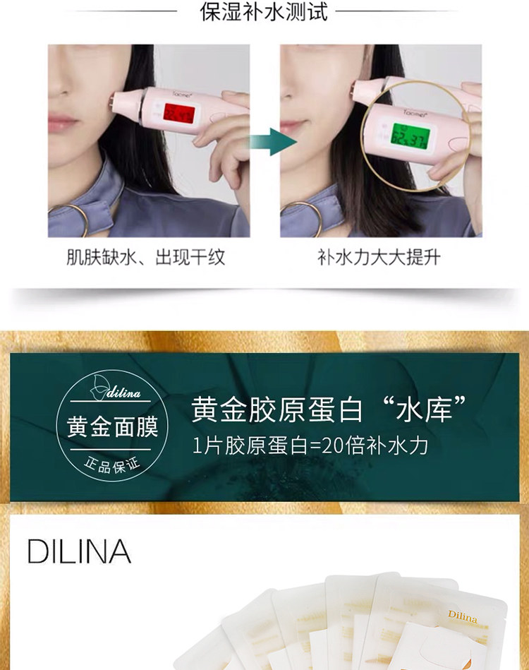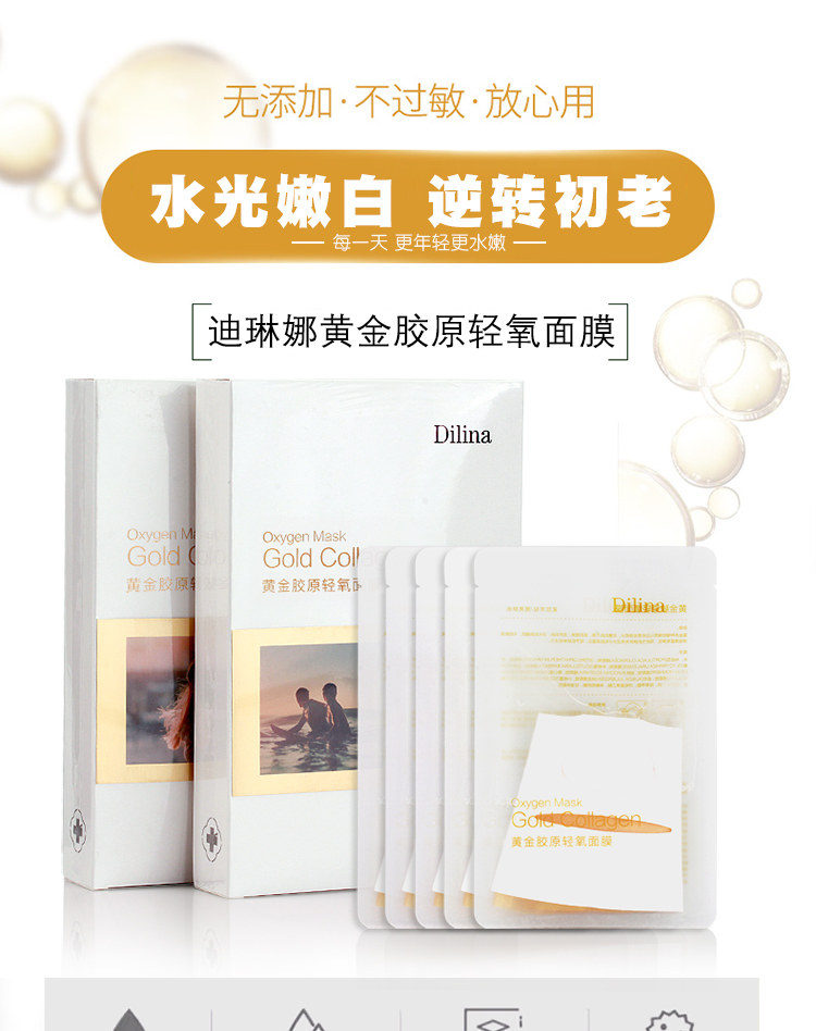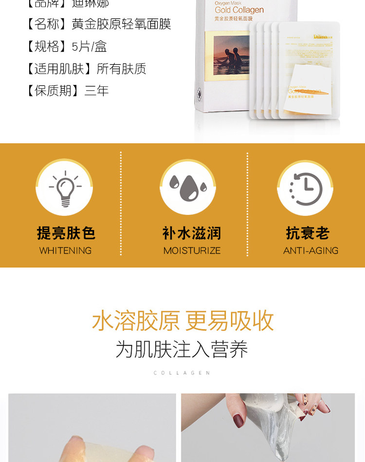 Dilina 迪琳娜黄金胶原蛋白轻氧面膜巨补水美白果冻透明敏感肌可用(一盒5片)