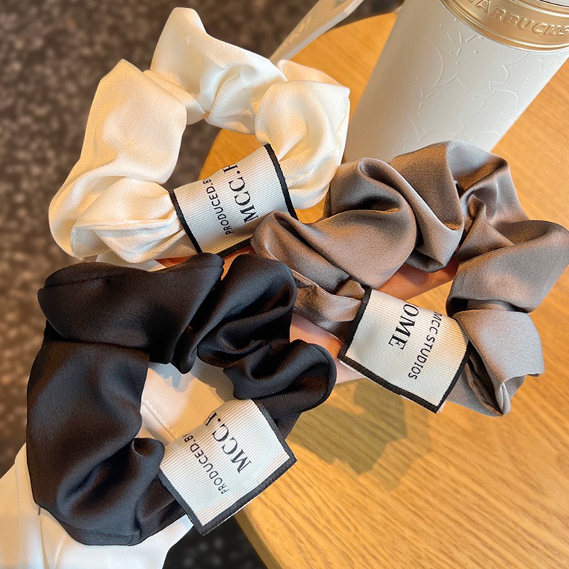 法式小香风质感大肠发圈韩国ins简约字母头饰皮筋高级感缎面发绳