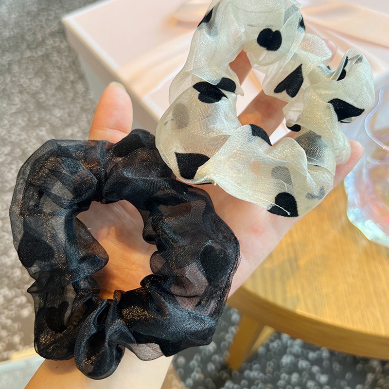 法式慵懒风大肠圈爱心网纱发绳夏季款头绳发饰少女小众设计感头饰