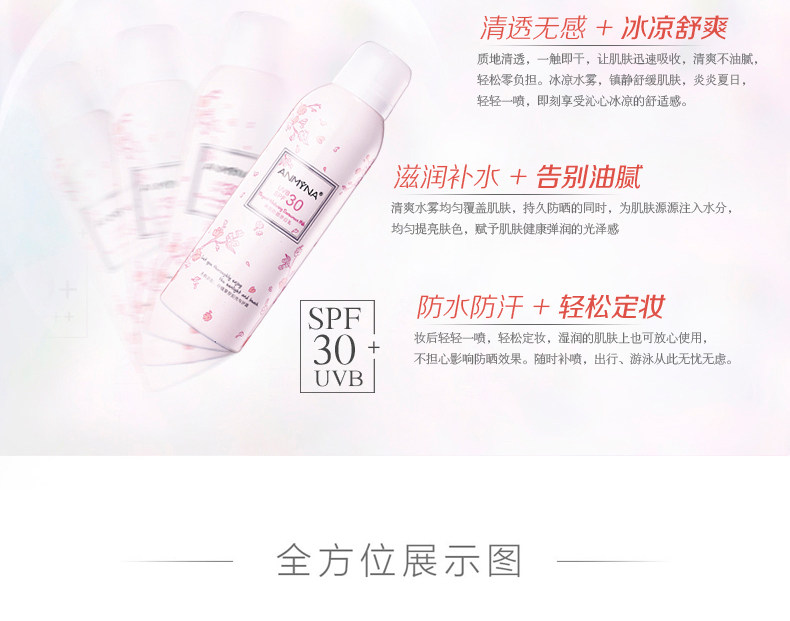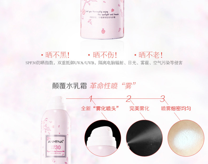 Anmyna安米娜防晒美白喷雾隔离 粉质细腻不卡粉脸部全身可用160ml
