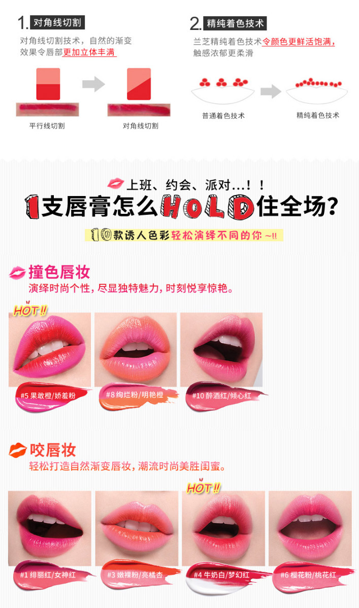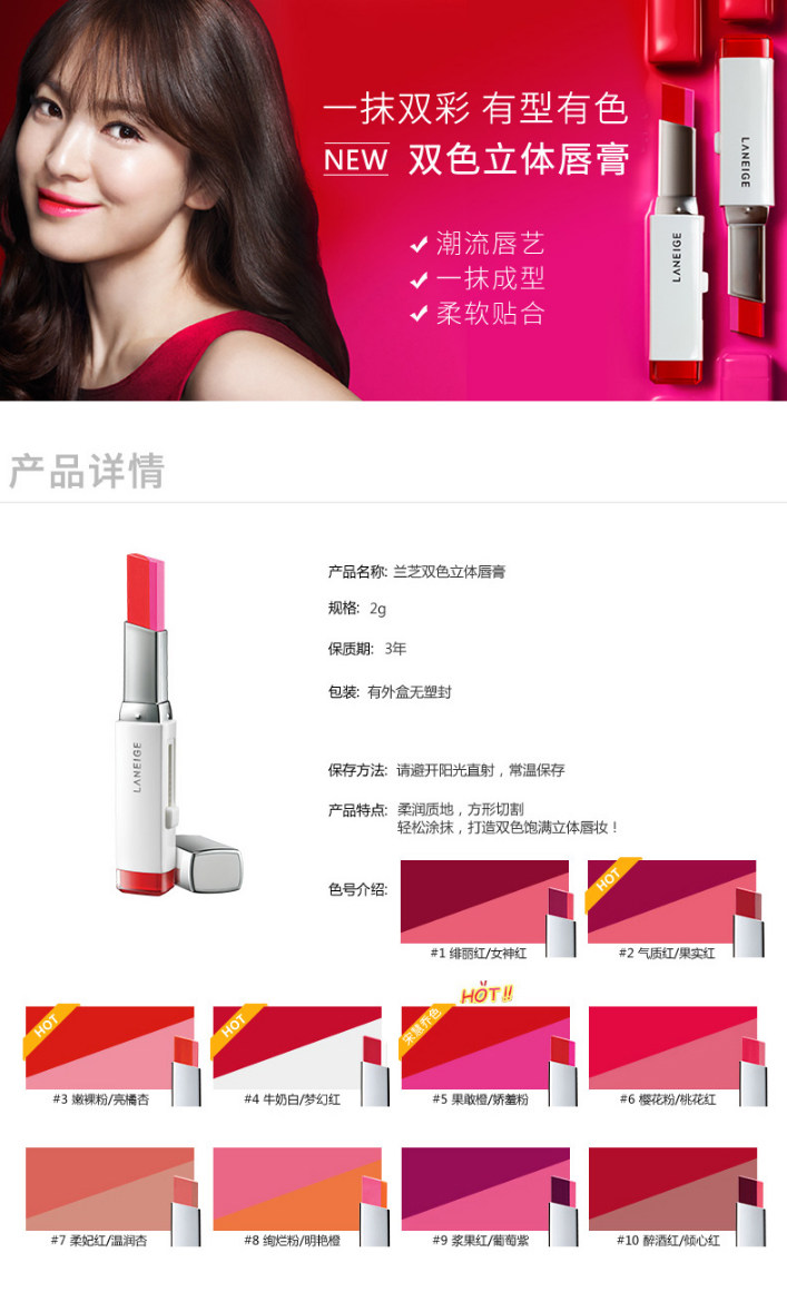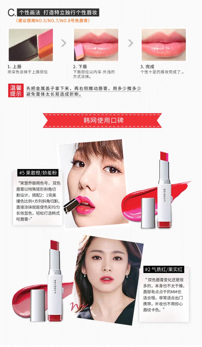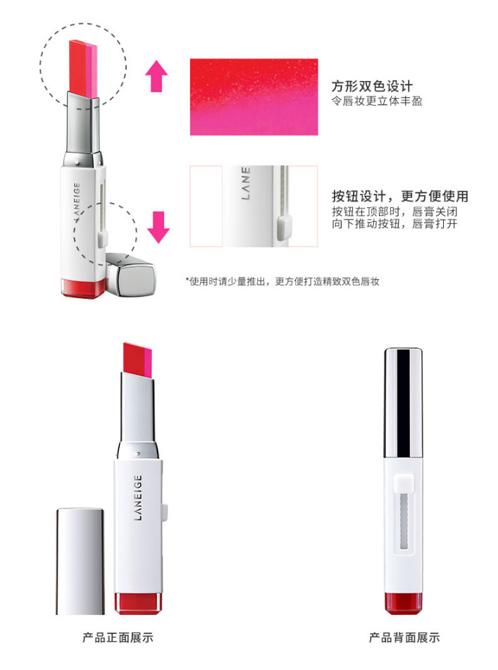 兰芝LANEIGE双色立体撞色口红打造饱满渐变唇妆持久保湿