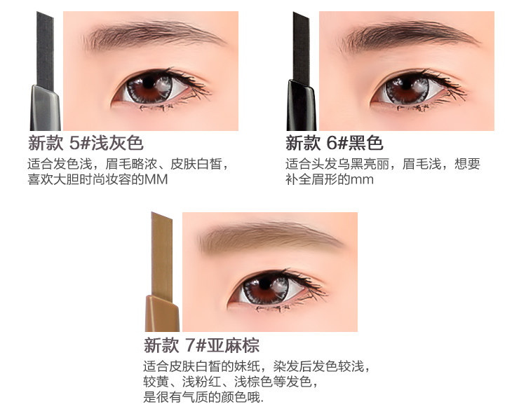 2、深色皮肤不要选择过浅过红的眉色,深棕或灰黑的眉色比较适合