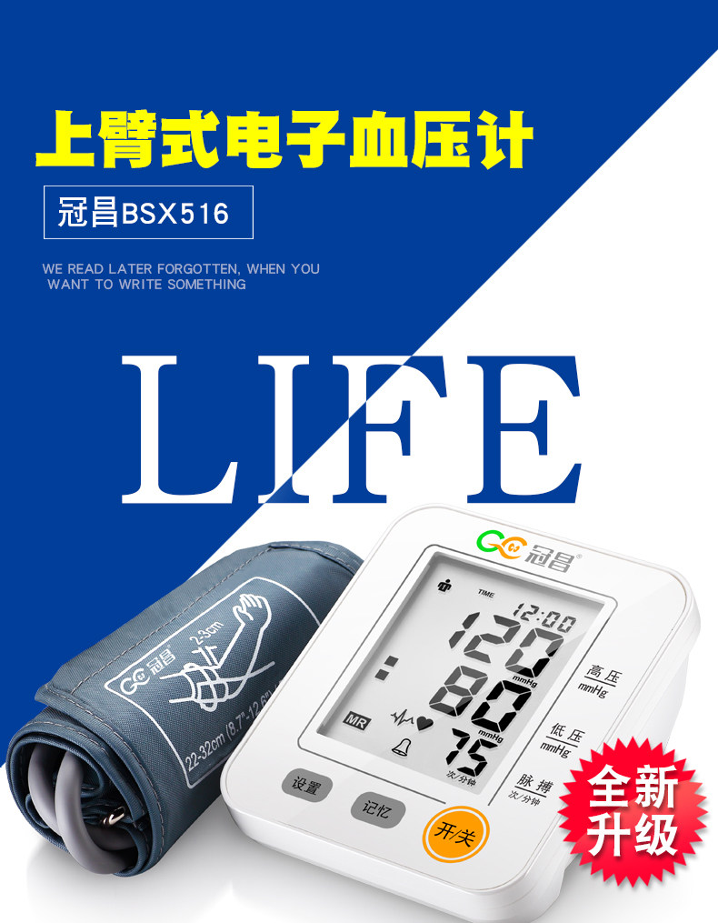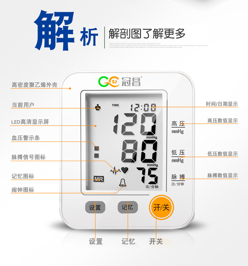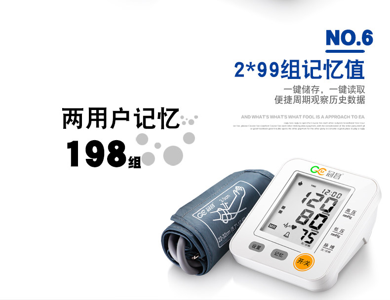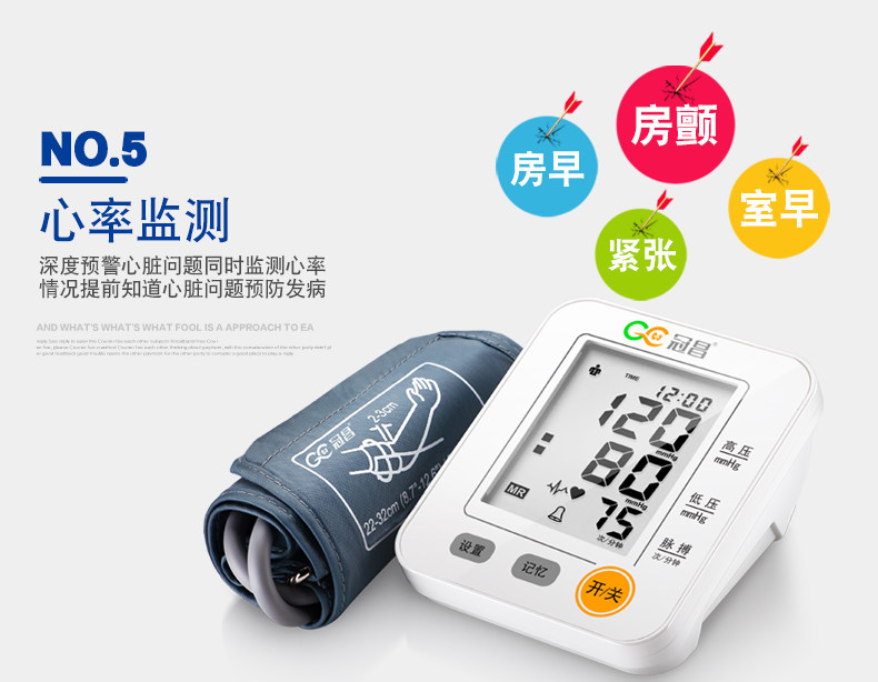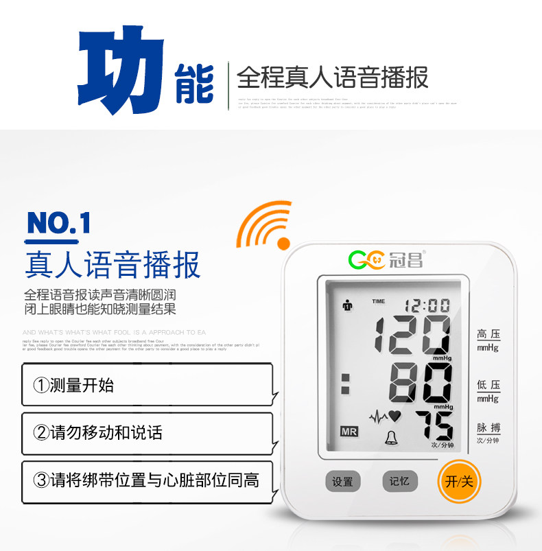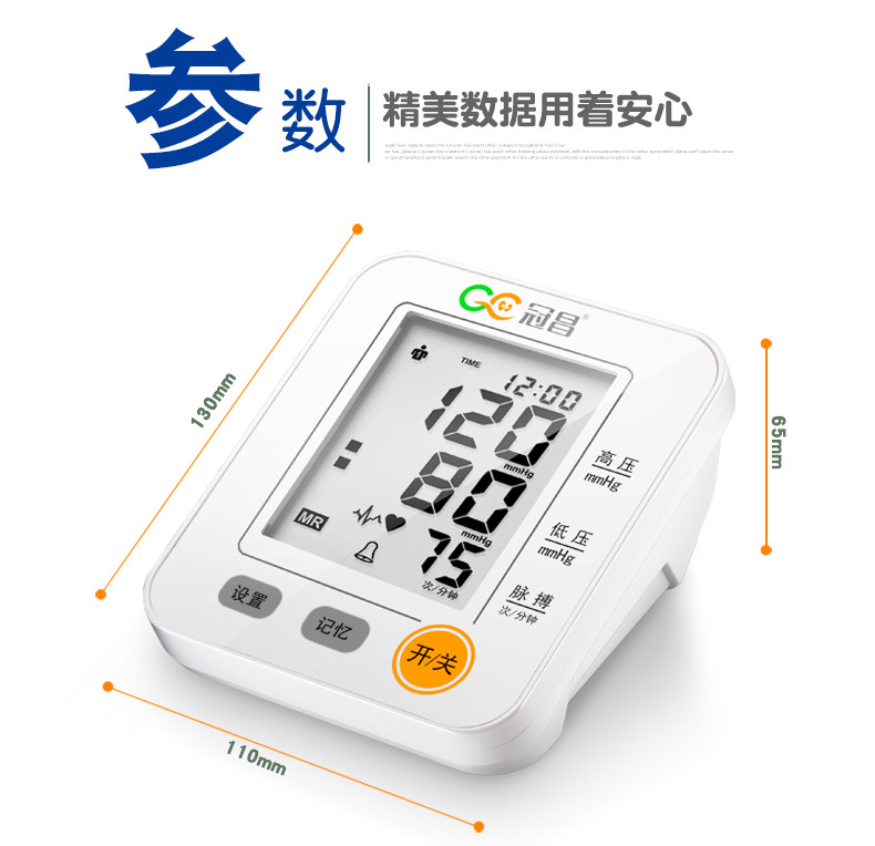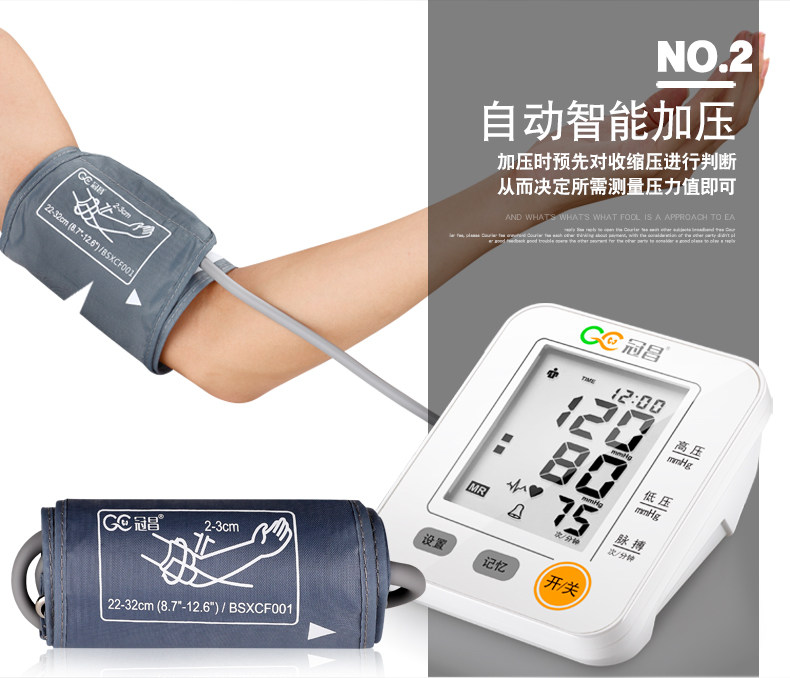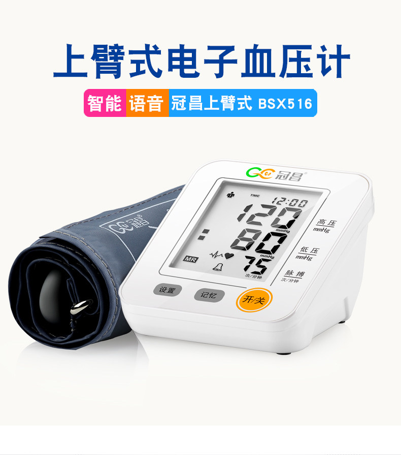 冠昌家用上臂式全自动语音大屏幕电子量血压计测量仪器测量计测压