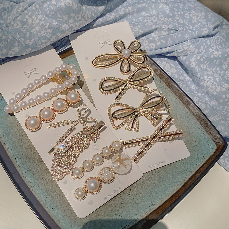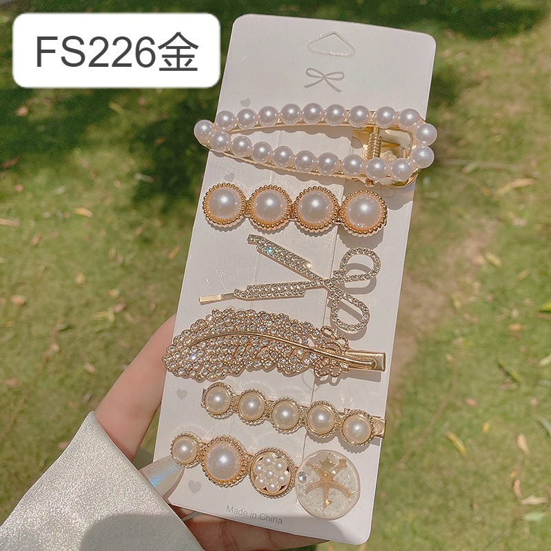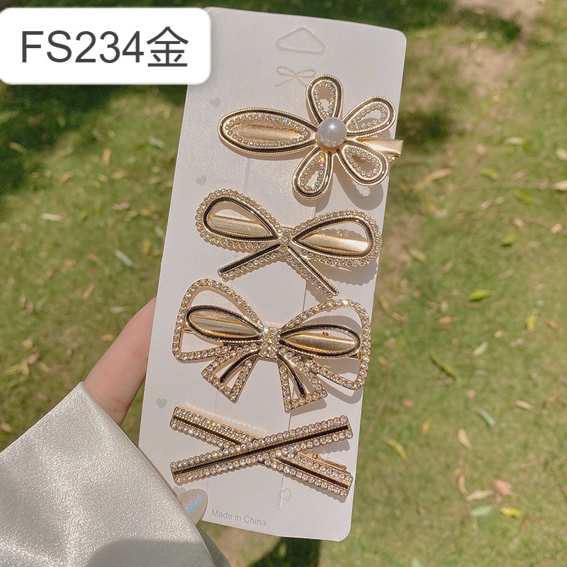 抖音羽毛个性发夹水钻剪刀夹韩国少女风复古蝴蝶结刘海夹仙女发饰 FS226金 FS234金