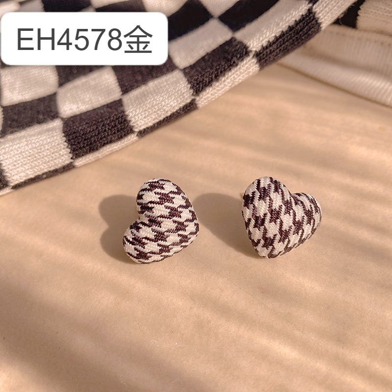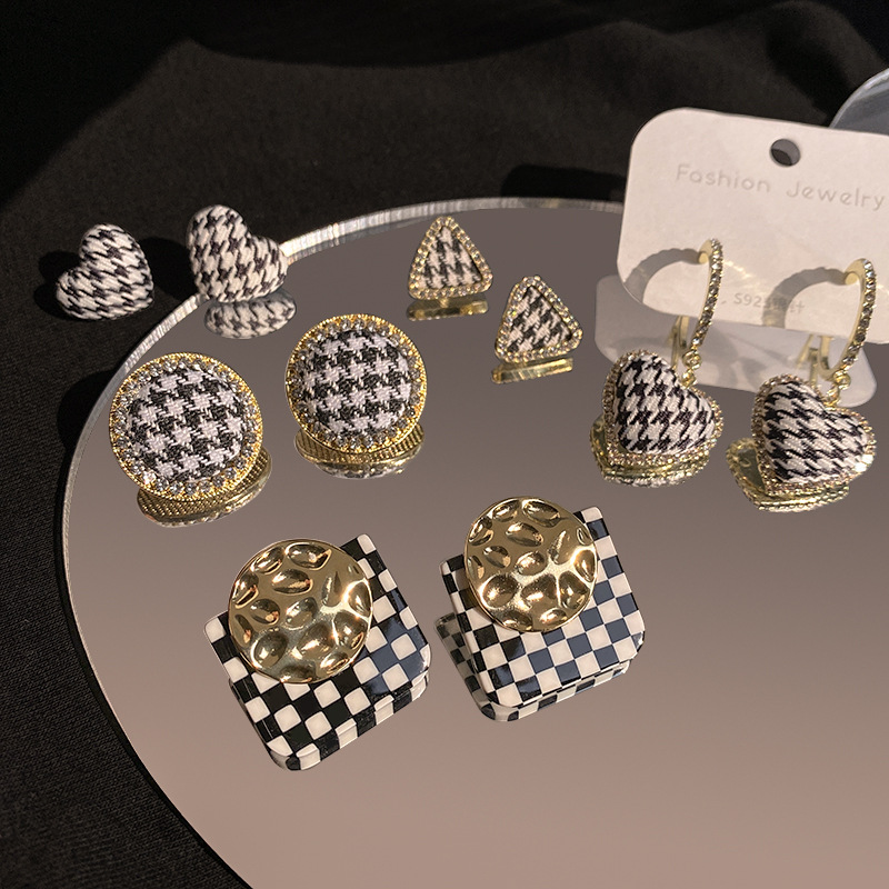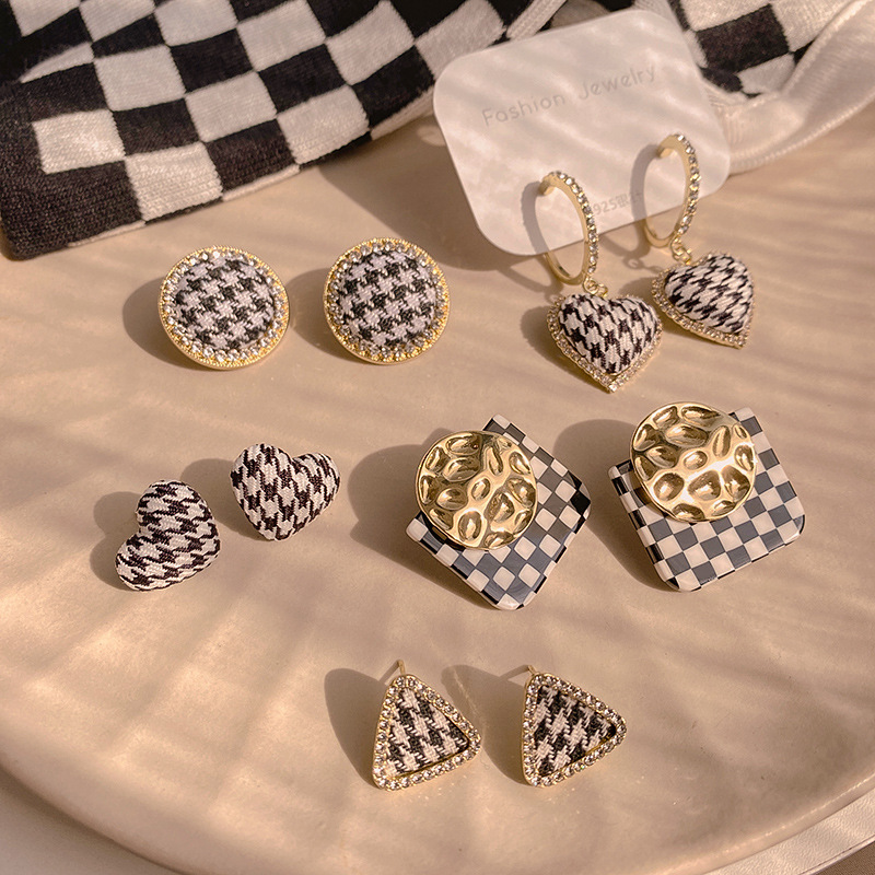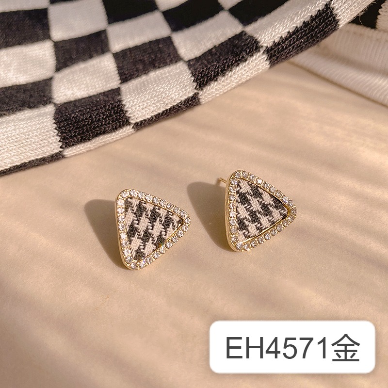 棋盘格耳环女高级感轻奢小众个性黑白格子耳钉简约千鸟格耳饰韩国 EH4571金 EH4578金 EH4576金