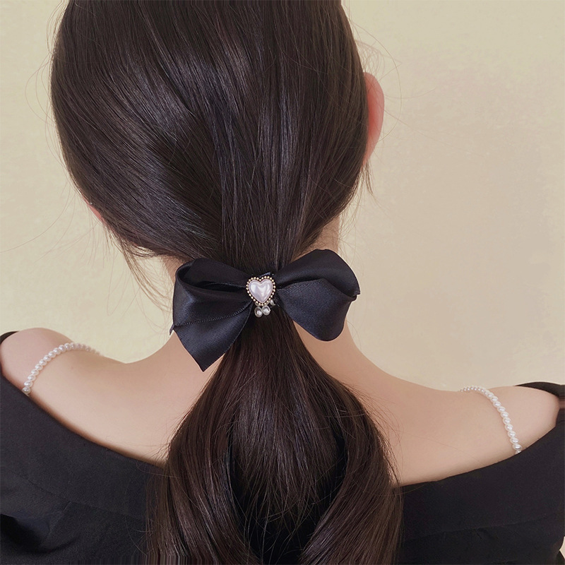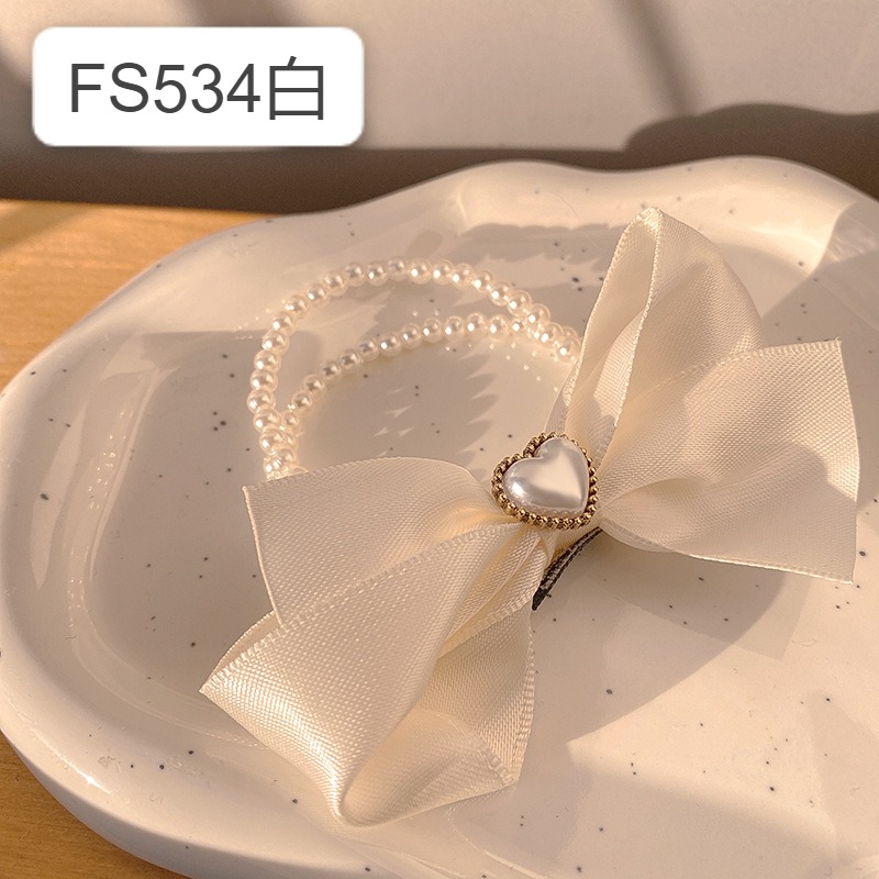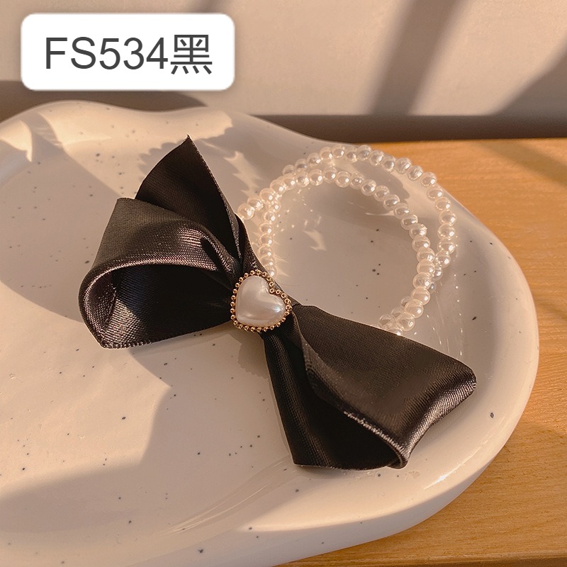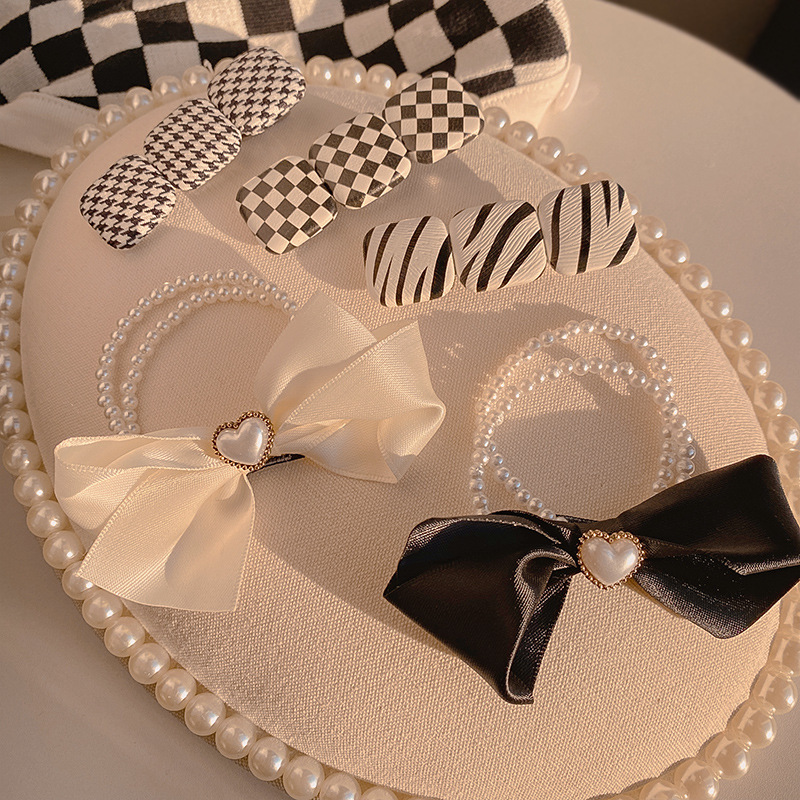 黑色蝴蝶结发夹高端气质网红棋盘格发圈头发蓬松夹子后脑勺一字夹 FS534黑 FS534白