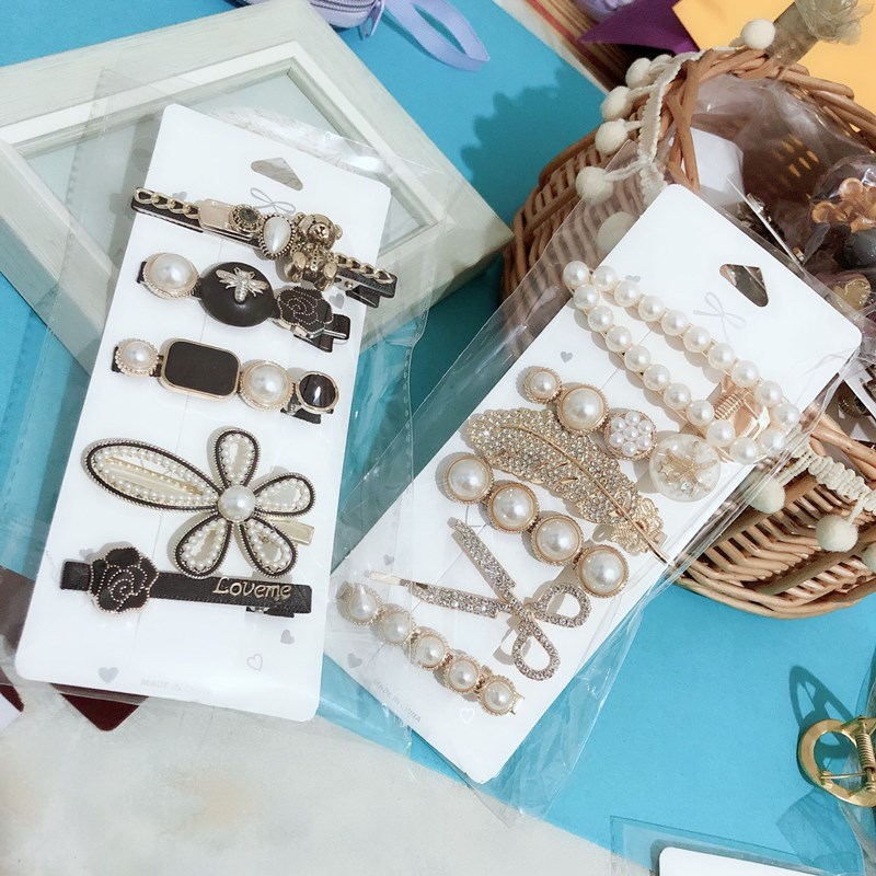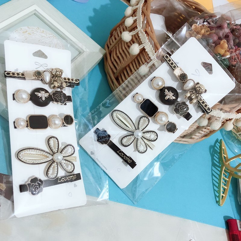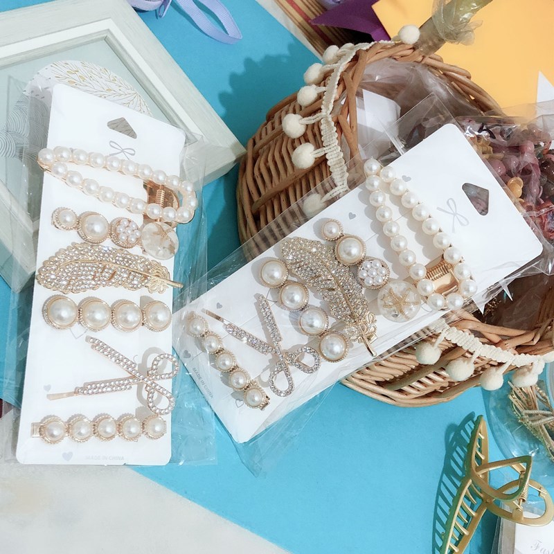 网红爆款羽毛发夹6件套水钻剪刀发夹批发韩国ins简约头饰侧边夹