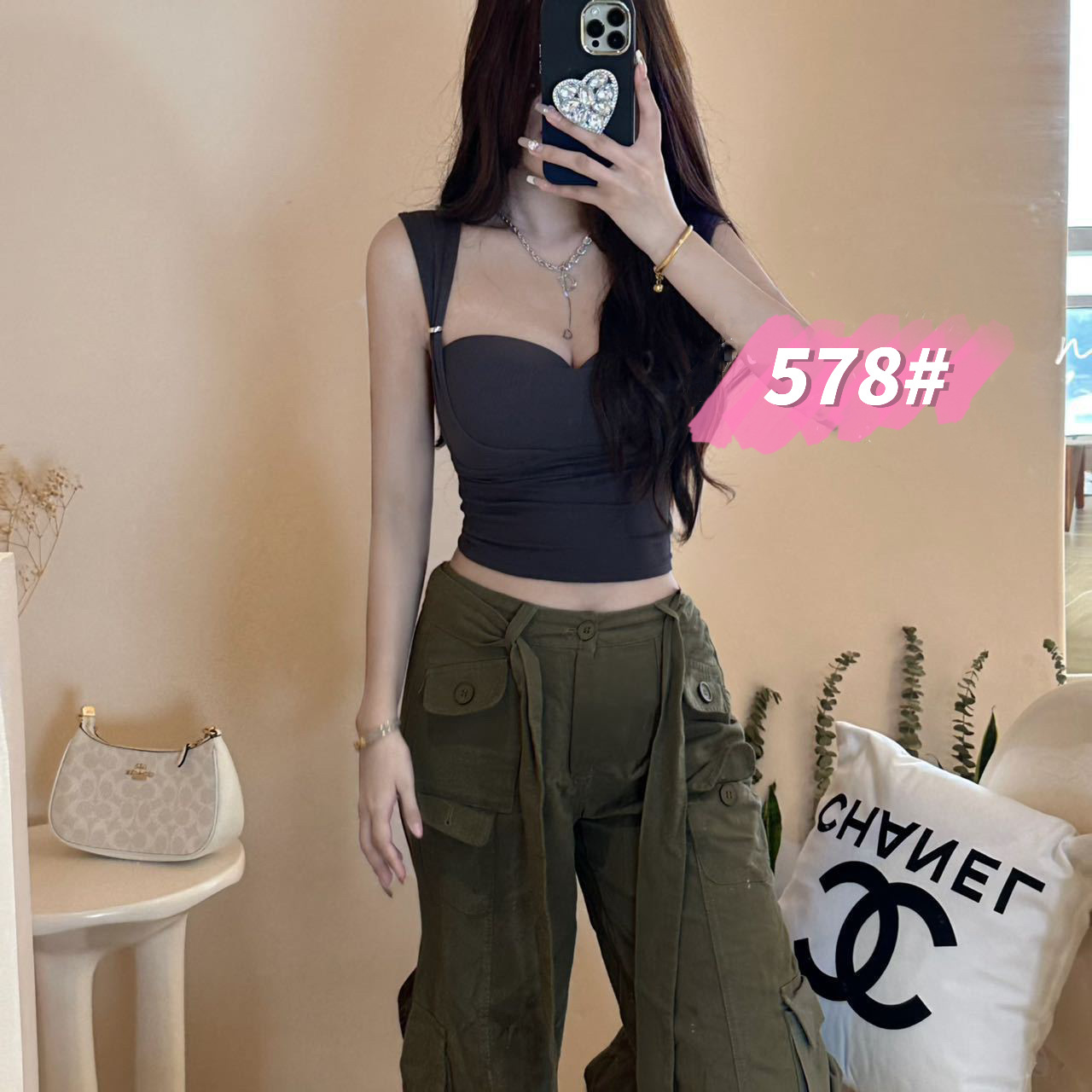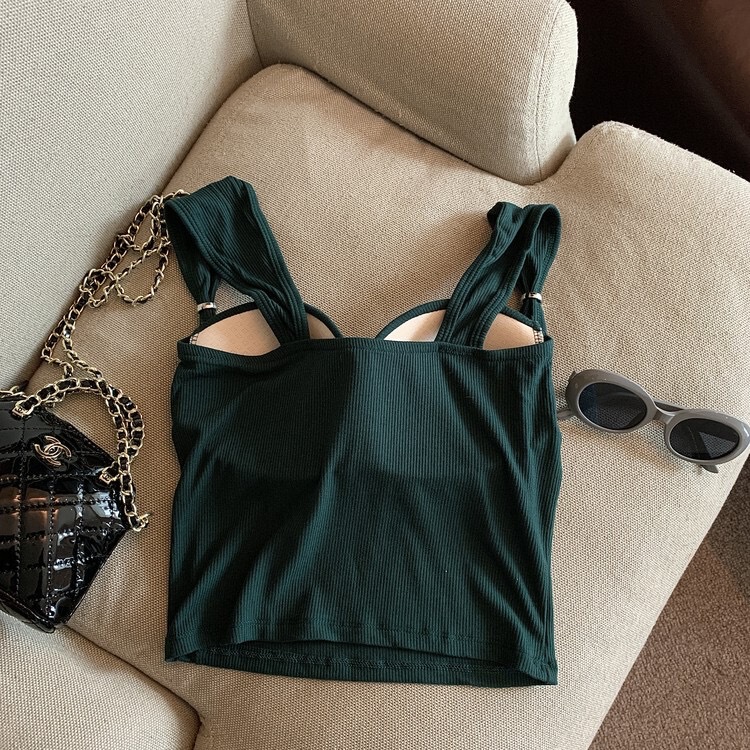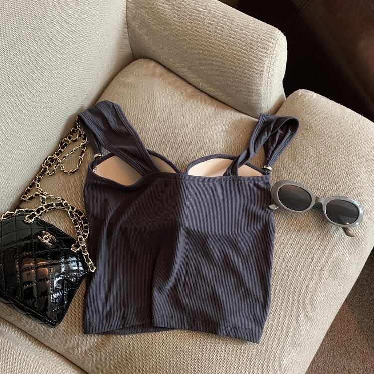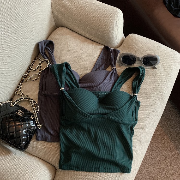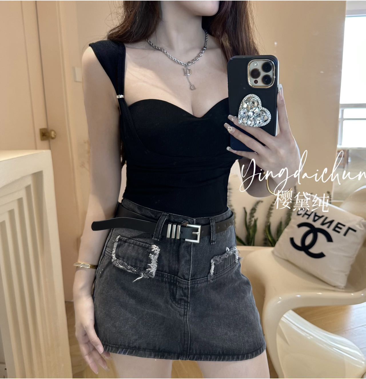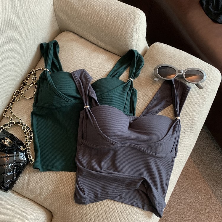 578# 性感戒指铁环设计 宽肩背心 宽肩带吊带 带胸垫