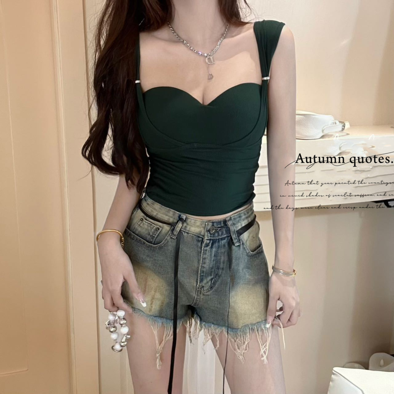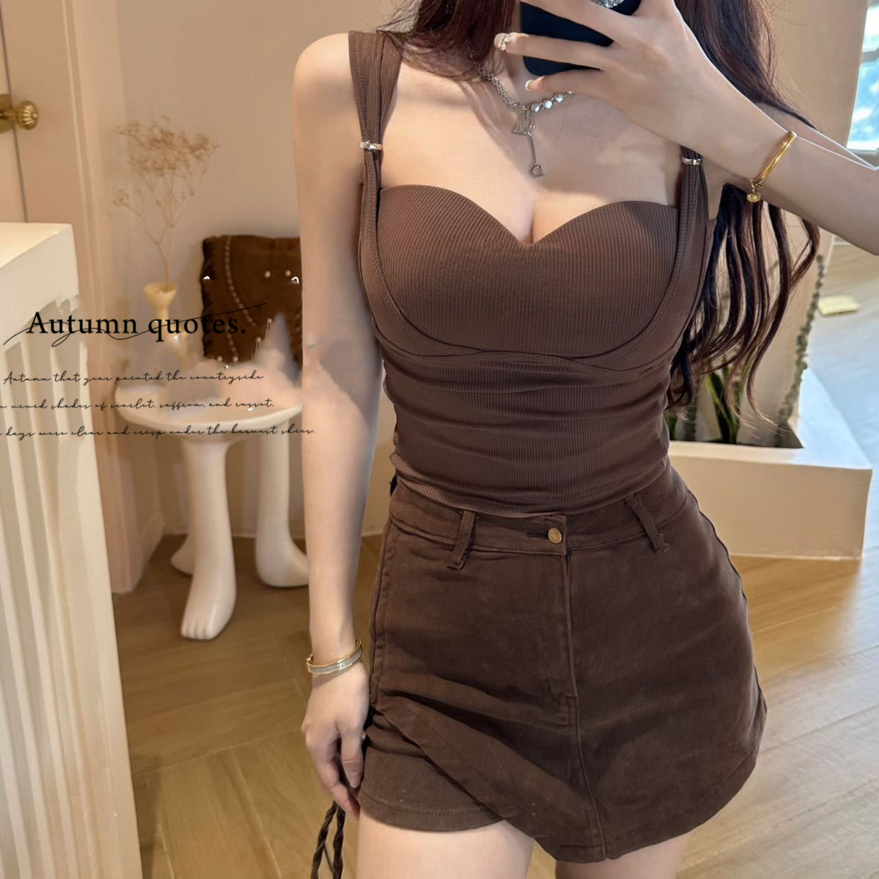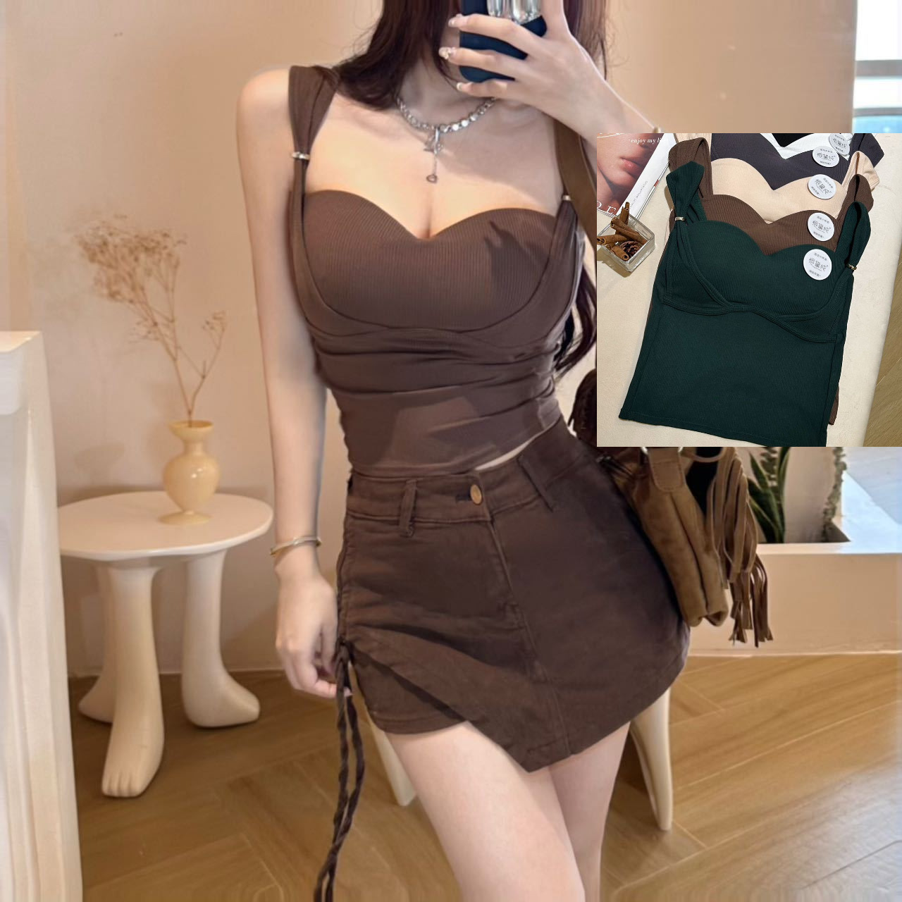 578# 性感戒指铁环设计 宽肩背心 宽肩带吊带 带胸垫