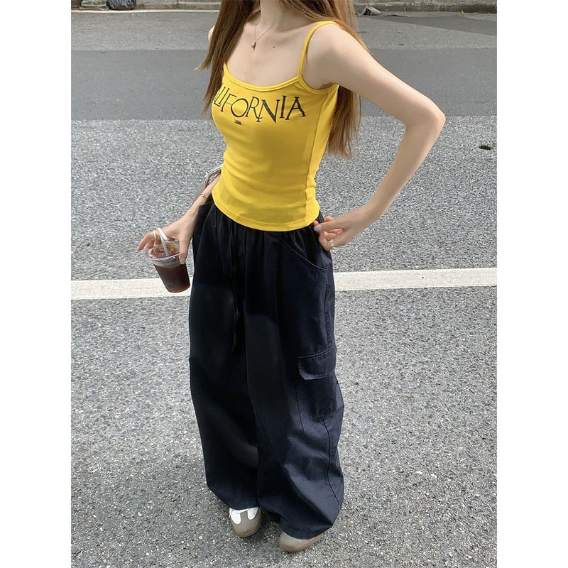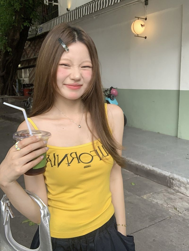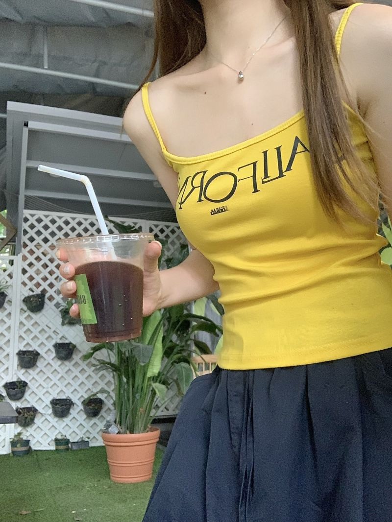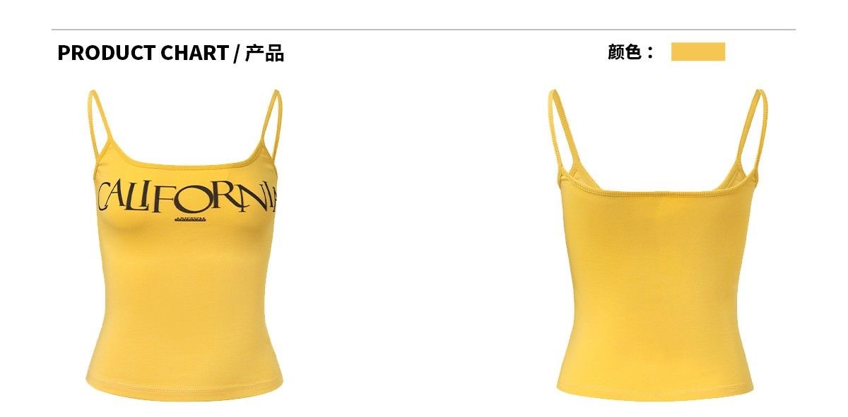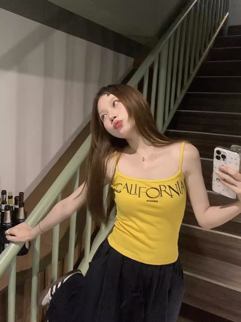 2038# 美式复古吊带背心 字母印花 带胸垫 修身上衣