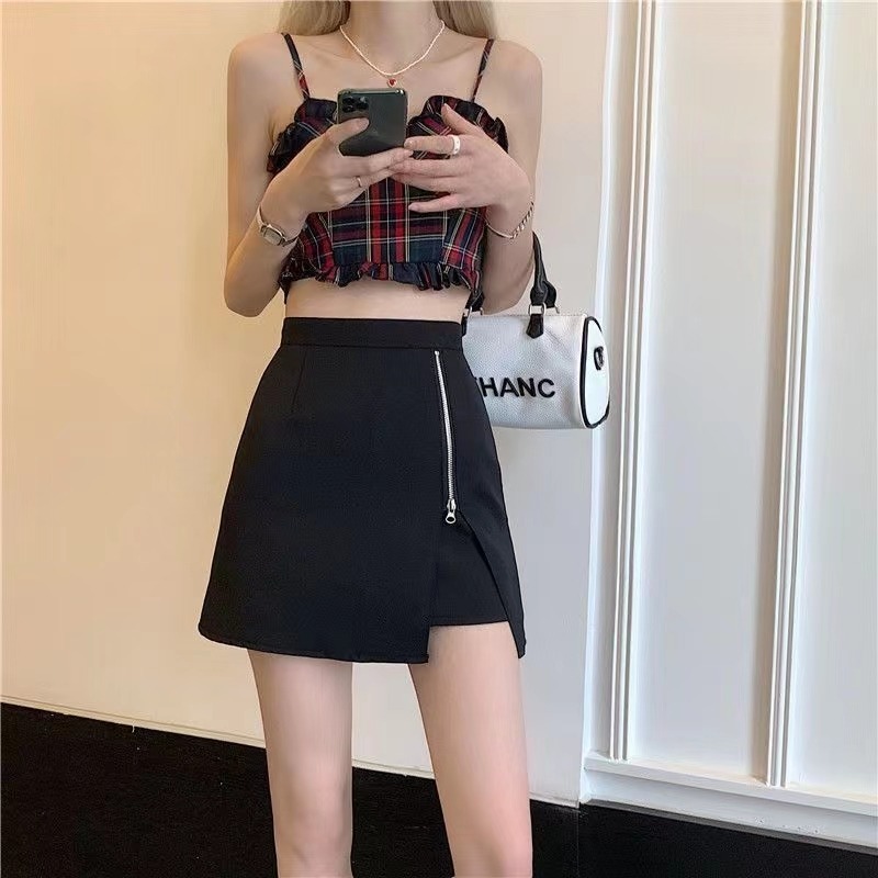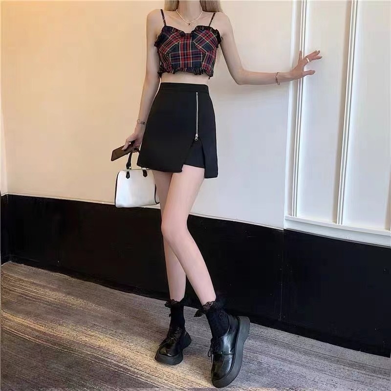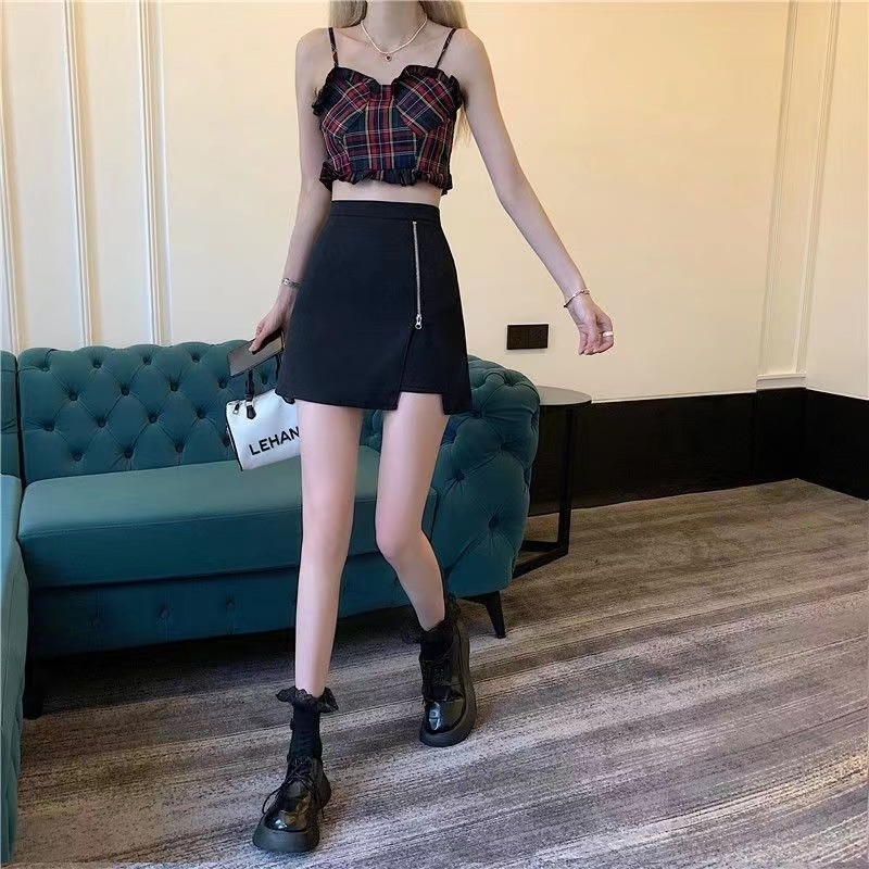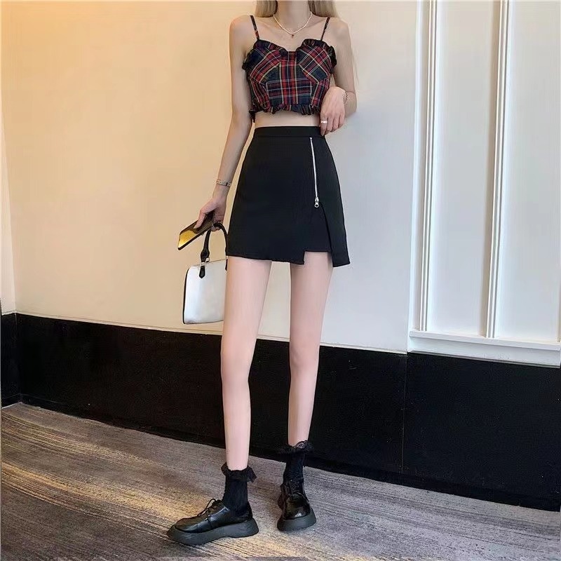 黑色拉链半身裙女时尚开叉短裙高腰显瘦防走光裤裙