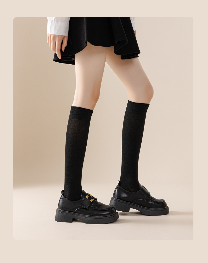 日系jk黑色小腿袜廋腿袜子女春夏秋薄款过膝袜ins潮纯色微压袜子