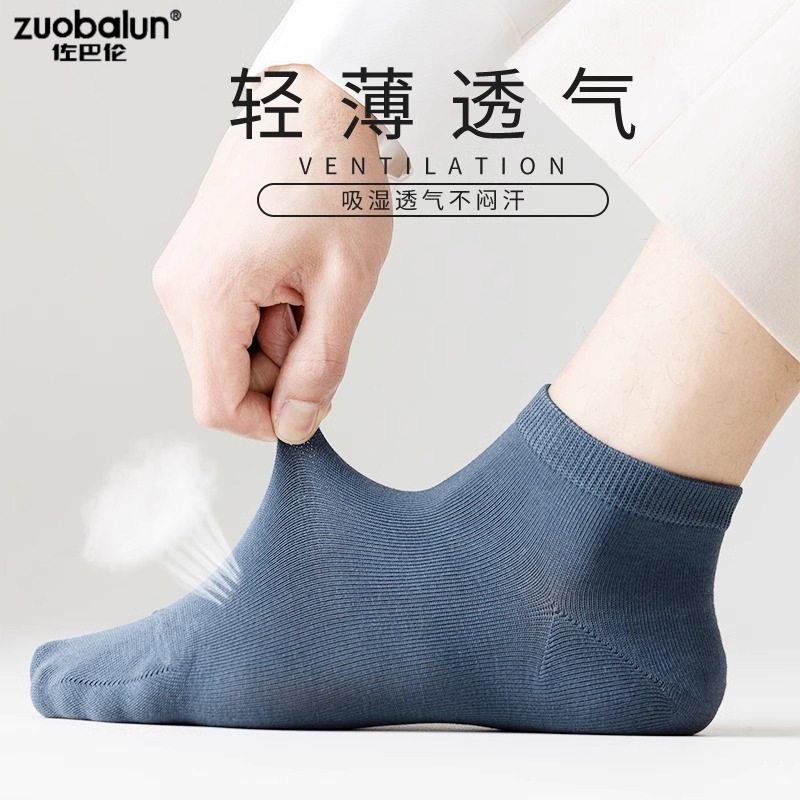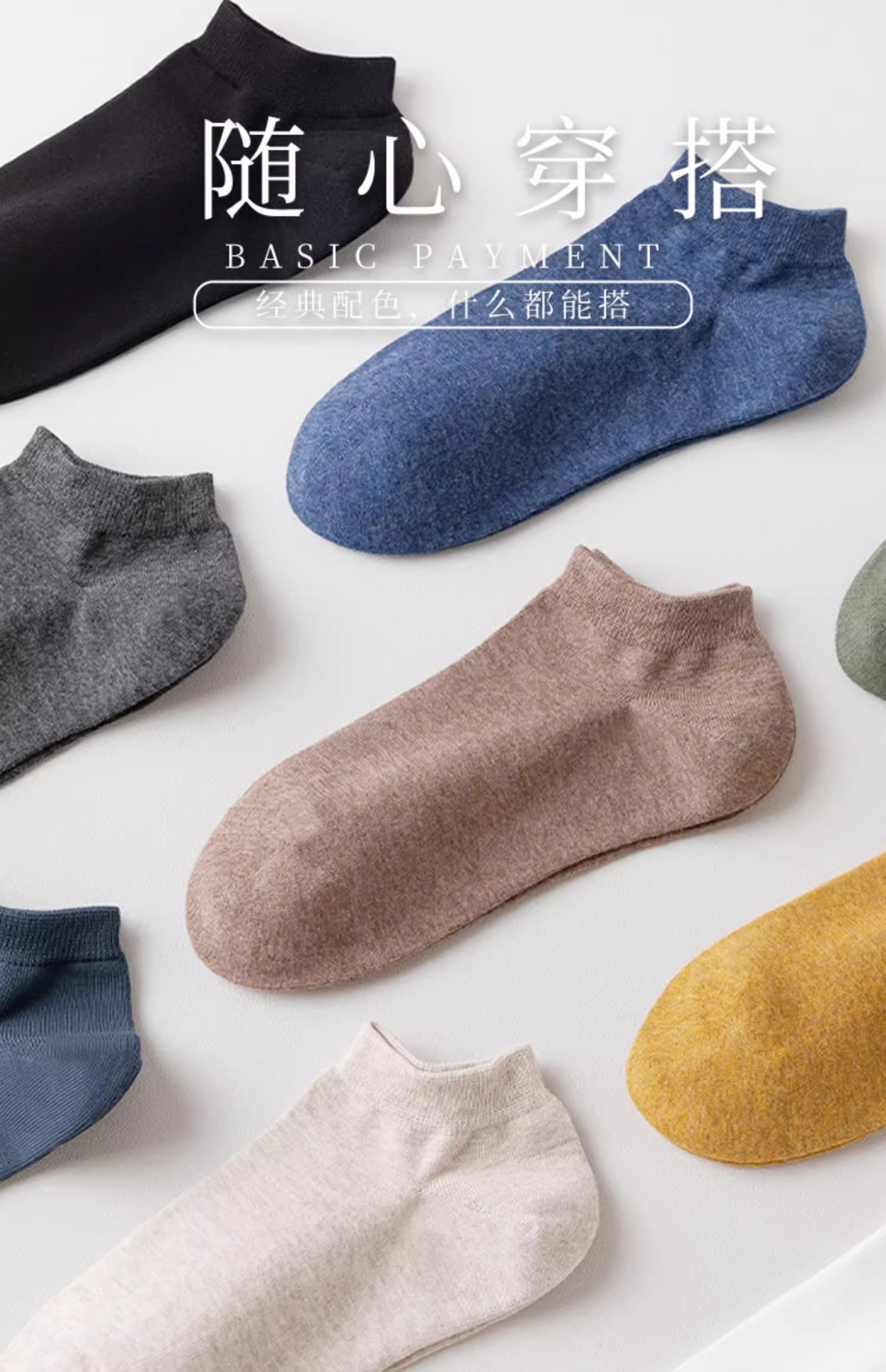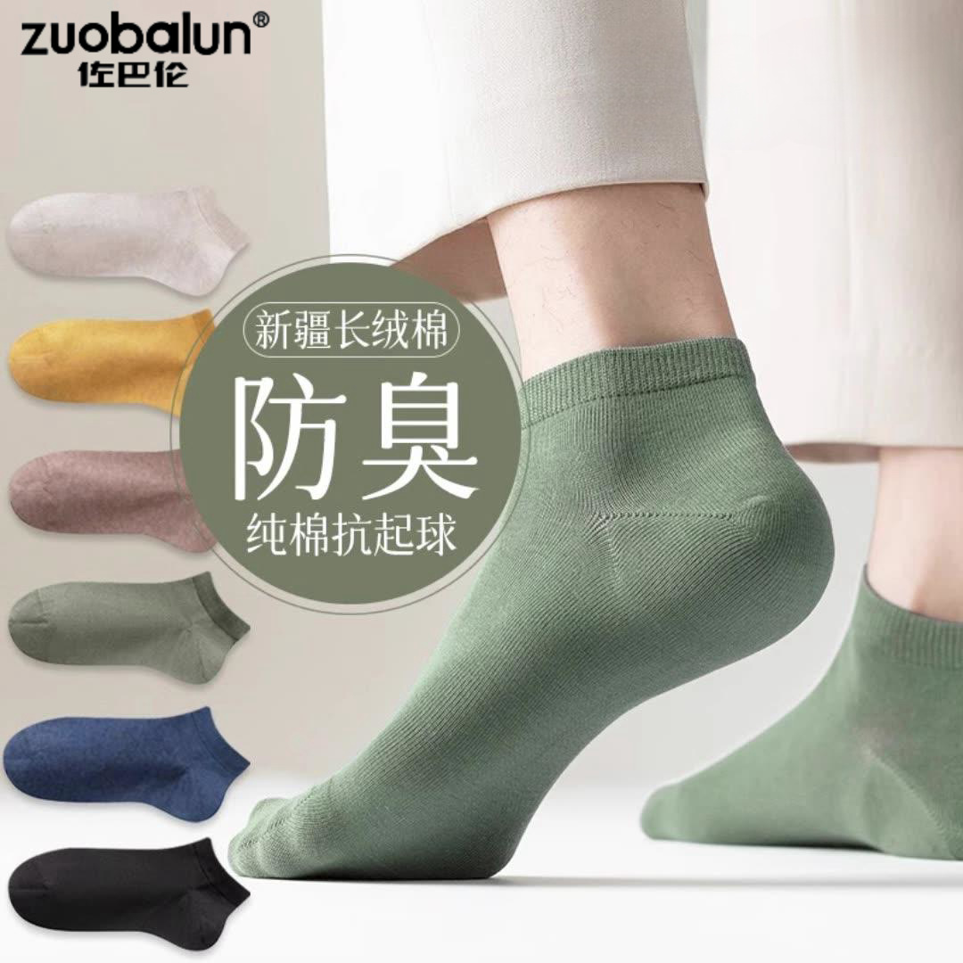 纯棉袜子男士短袜夏季薄款抗菌防臭不掉跟船袜纯色低帮棉袜子