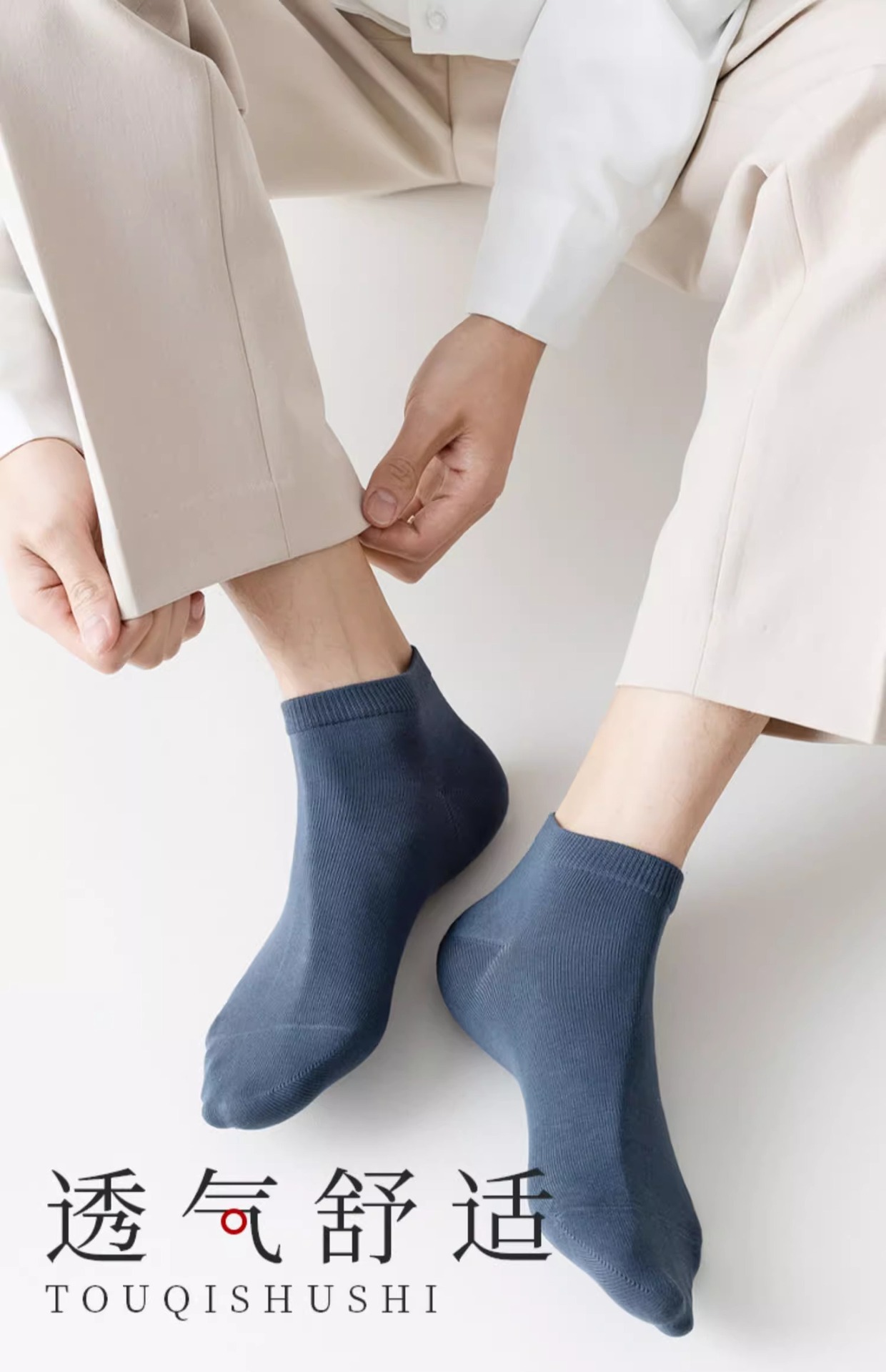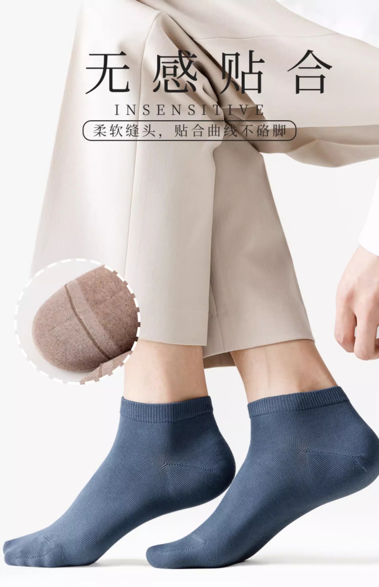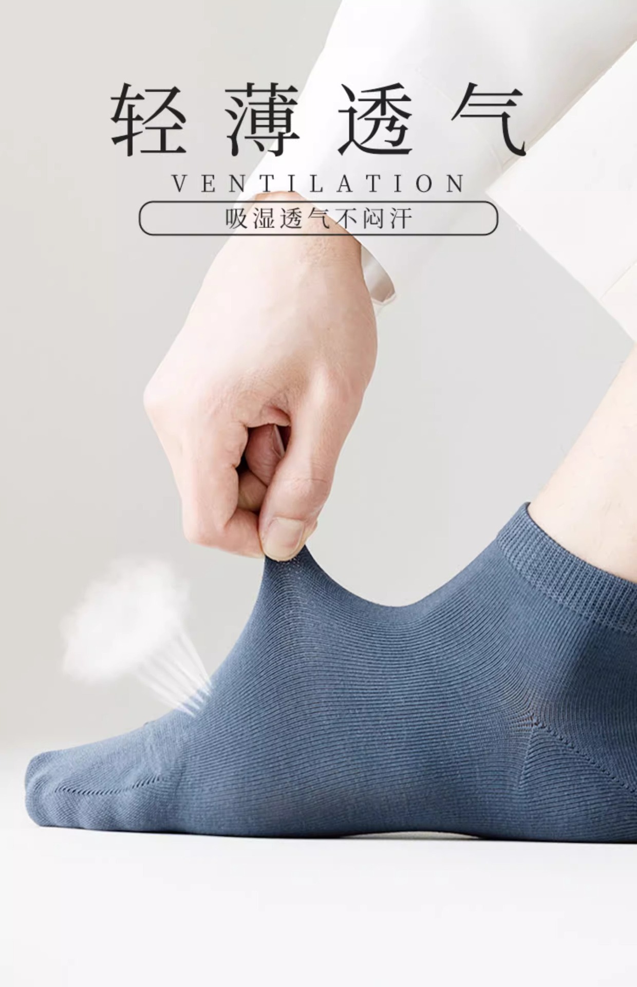 纯棉袜子男士短袜夏季薄款抗菌防臭不掉跟船袜纯色低帮棉袜子